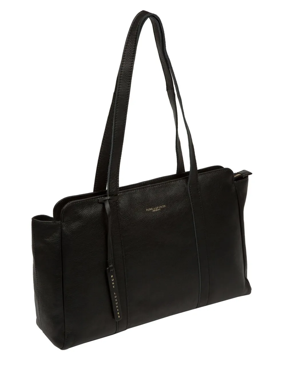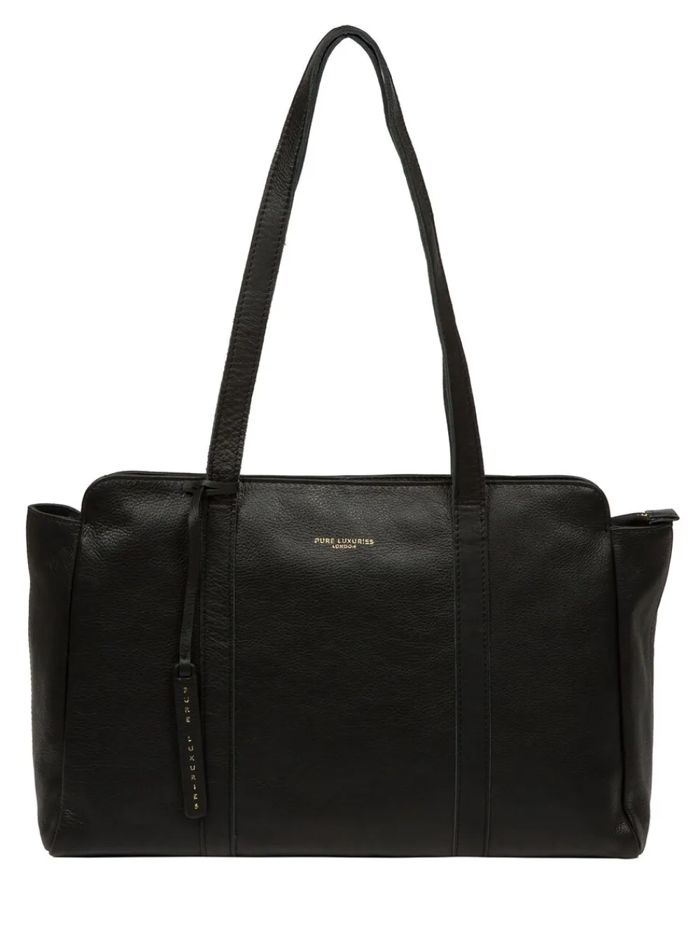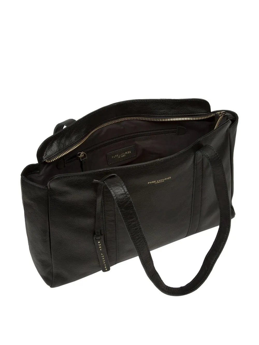 Handcrafted from natural leather, the Olney handbag from Pure Luxuries Belvedere Collection elevates the classic design with the smooth and soft to the touch feel. The sleek and robust finish of the lined spacious interior is secured under a zip over top which is made of gold coloured metal zips. A slip and zipped pocket on the interior of the style provide the perfect place for your phone, keys and other essentials. Adorned with leather handles with a drop length of 35cm which complements the Pure Luxuries logo which is embossed in gold foil on the front of the bag and the bag charm for a beautifully simple and sophisticated finishing touch. Buitenkant 100% leer. Voering 100% katoen.