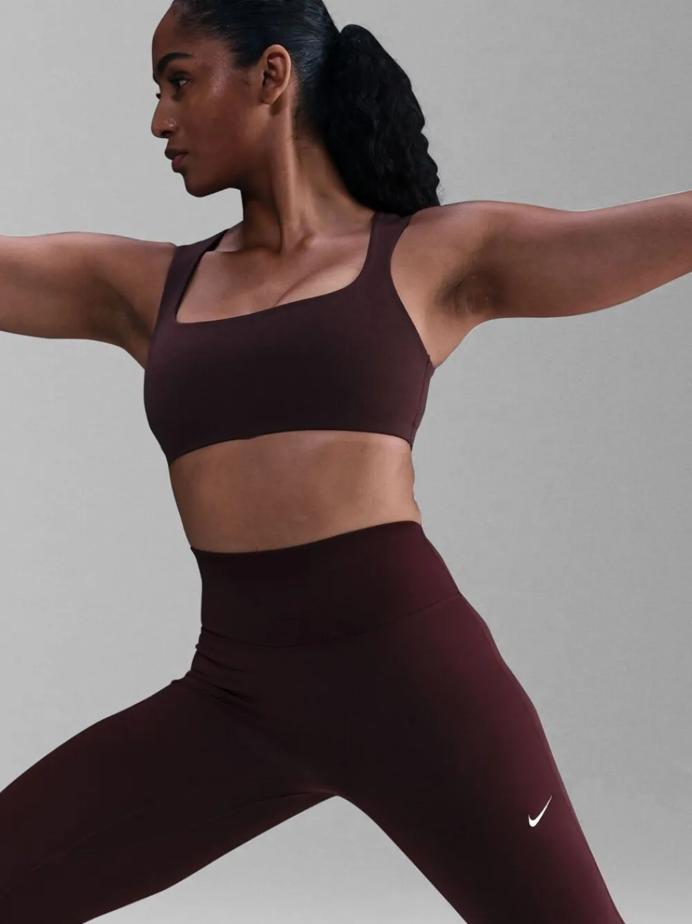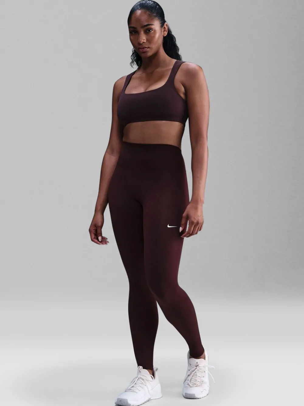 Nike One Seamless Front Women’s High-Waisted Full-Length Leggings. Nike One works for it all. Midweight and peachy-soft, these leggings stretch with your every move and dry quickly for comfort in any activity. The absence of a front seam helps keep the fabric from riding up for a smooth fit Nike Dri-FIT technology moves sweat away from your skin for quicker evaporation, helping you stay dry and comfortable Back pocket fits most phones 80% polyester, 20% elastaan.