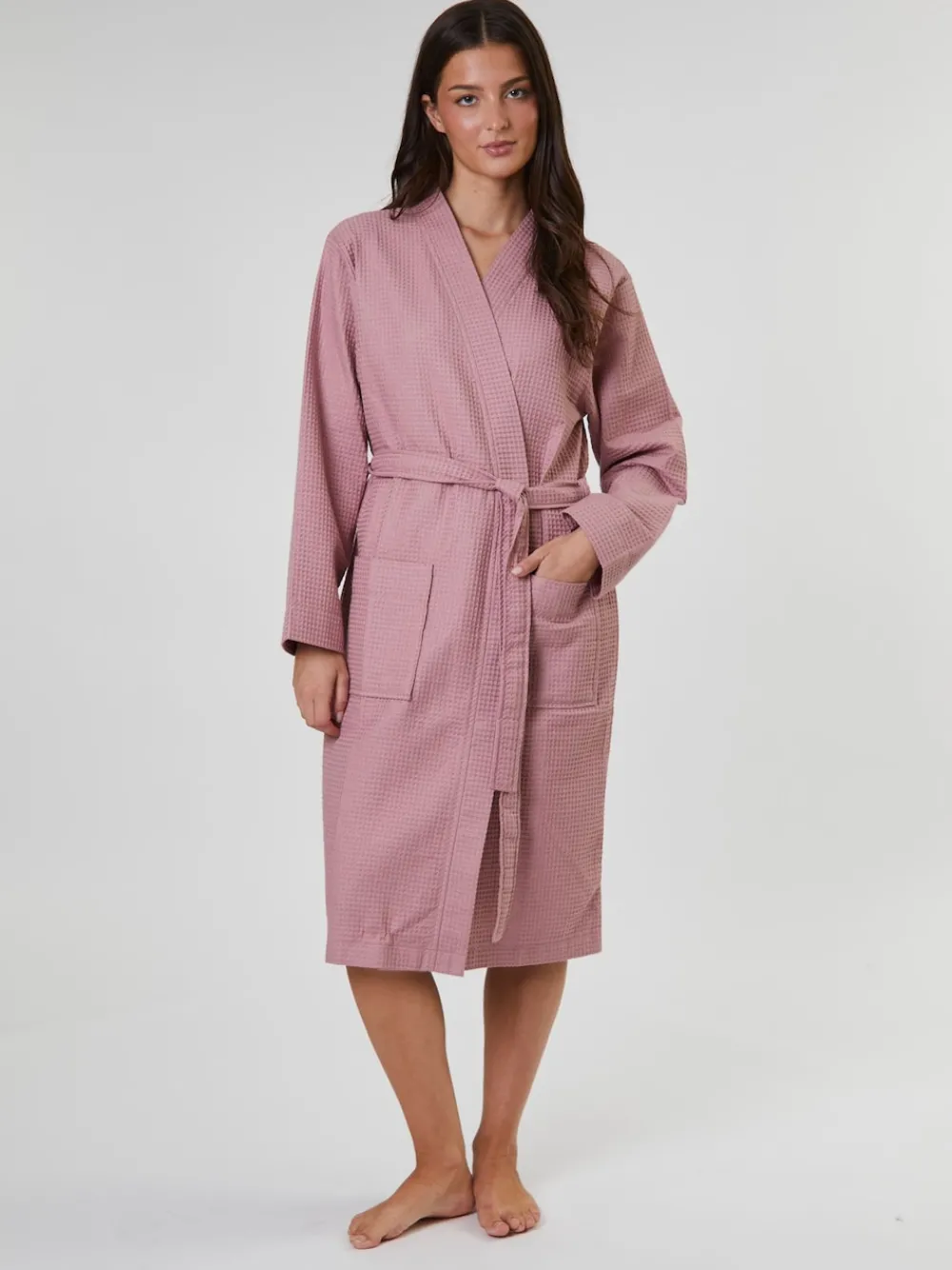Oudroze – 100% katoenen gewafelde kamerjas*Loungeable Best