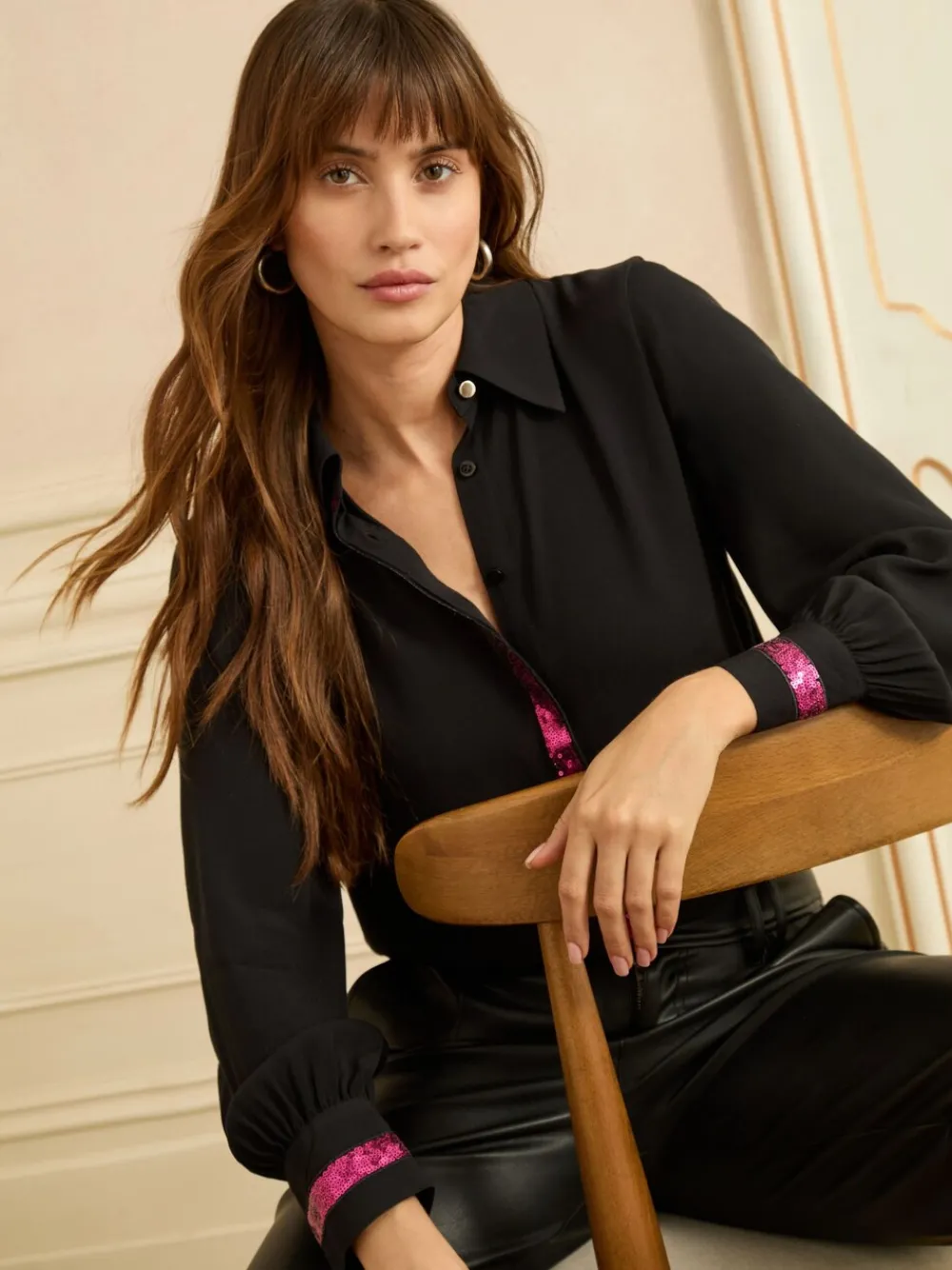 – overhemd met lange mouwen, knoopsluiting en paillettenrand*Love & Roses Clearance