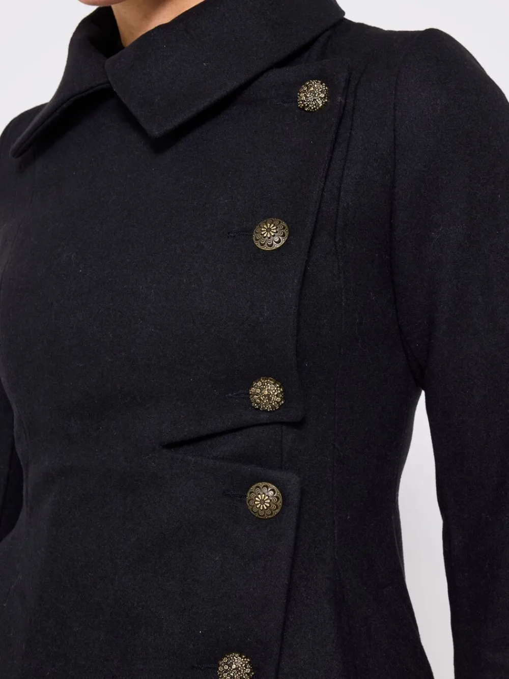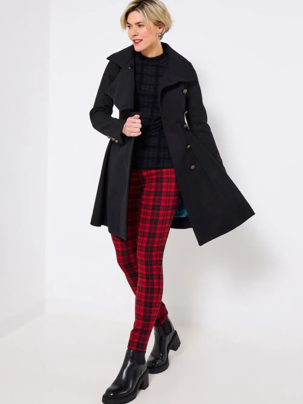 This black women’s coat is a wardrobe staple done the Joe Browns way. With refined flair in the oversized collar and unique button detail, it’ll pair with absolutely anything. Whether it’s adding a smart touch to jeans or a sophisticated finish to skirts, it ll keep you snug in style. Standaard van het midden van de nek tot de zoom 35.5″ / 90 cm. Alleen chemisch reinigen. 78% polyester, 10% wol, 6% acryl, 6% nylon.