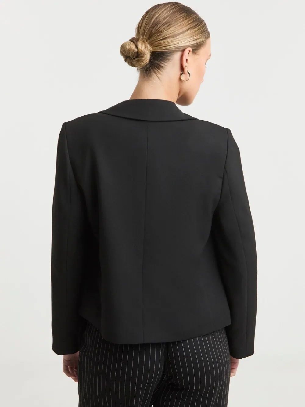 De perfecte aanvulling op je garderobe dit seizoen: shop deze Zwart Blazer met een edge-to-edge model, een getailleerde pasvorm en een Cropped model. Combineer het met een jeans en hakken met bandjes voor de perfecte bottomless brunchoutfit. Machinewasbaar. 71% polyester, 23% viscose, 6% elastaan.
