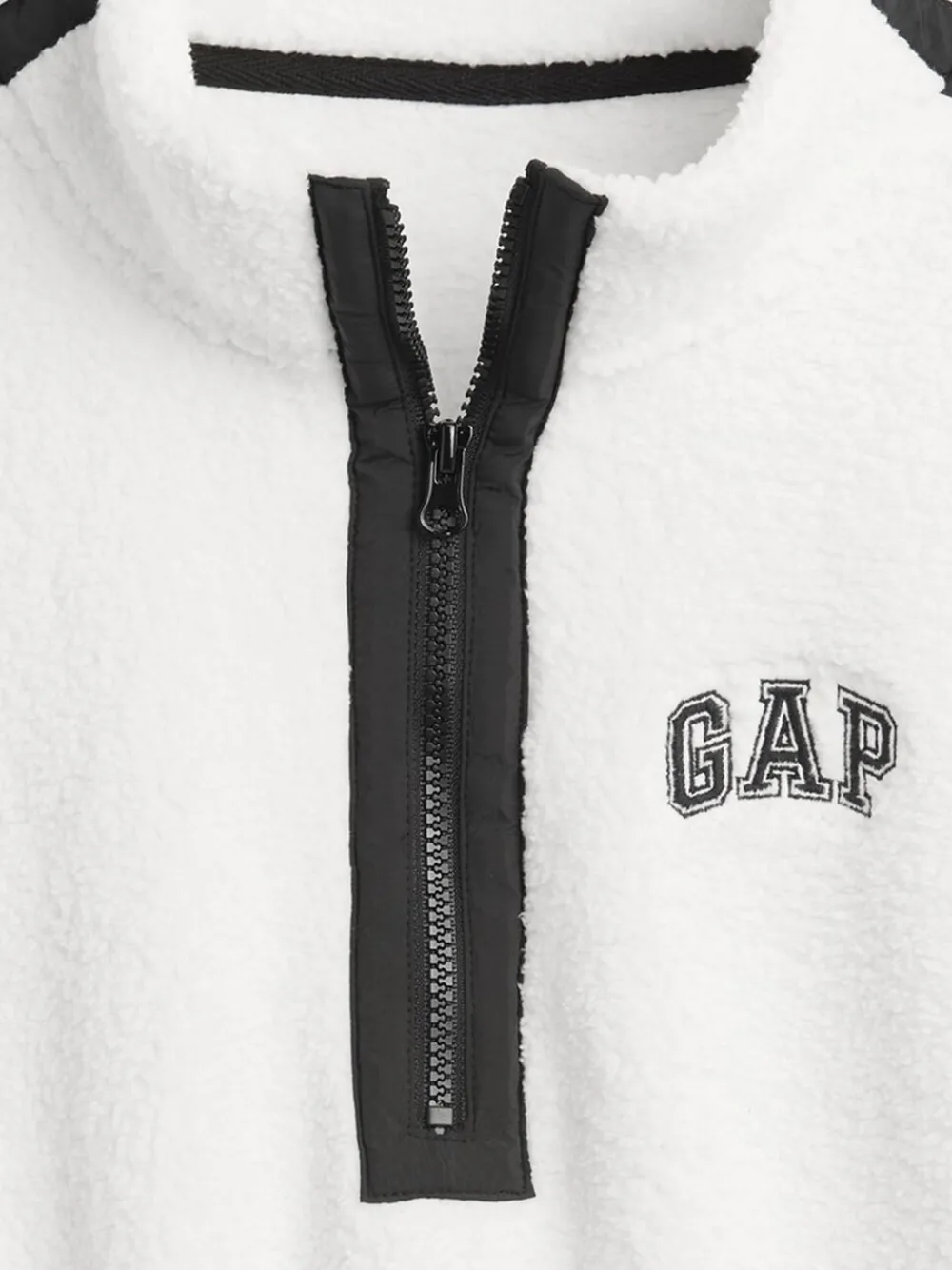 Cosy sherpa knit. Dropped shoulder, long sleeves with Elasticised cuffs. Stand collar, half-zip front. Logo at chest. Elasticised hem. Machinewasbaar. 70% gerecycled polyester, 30% polyester.