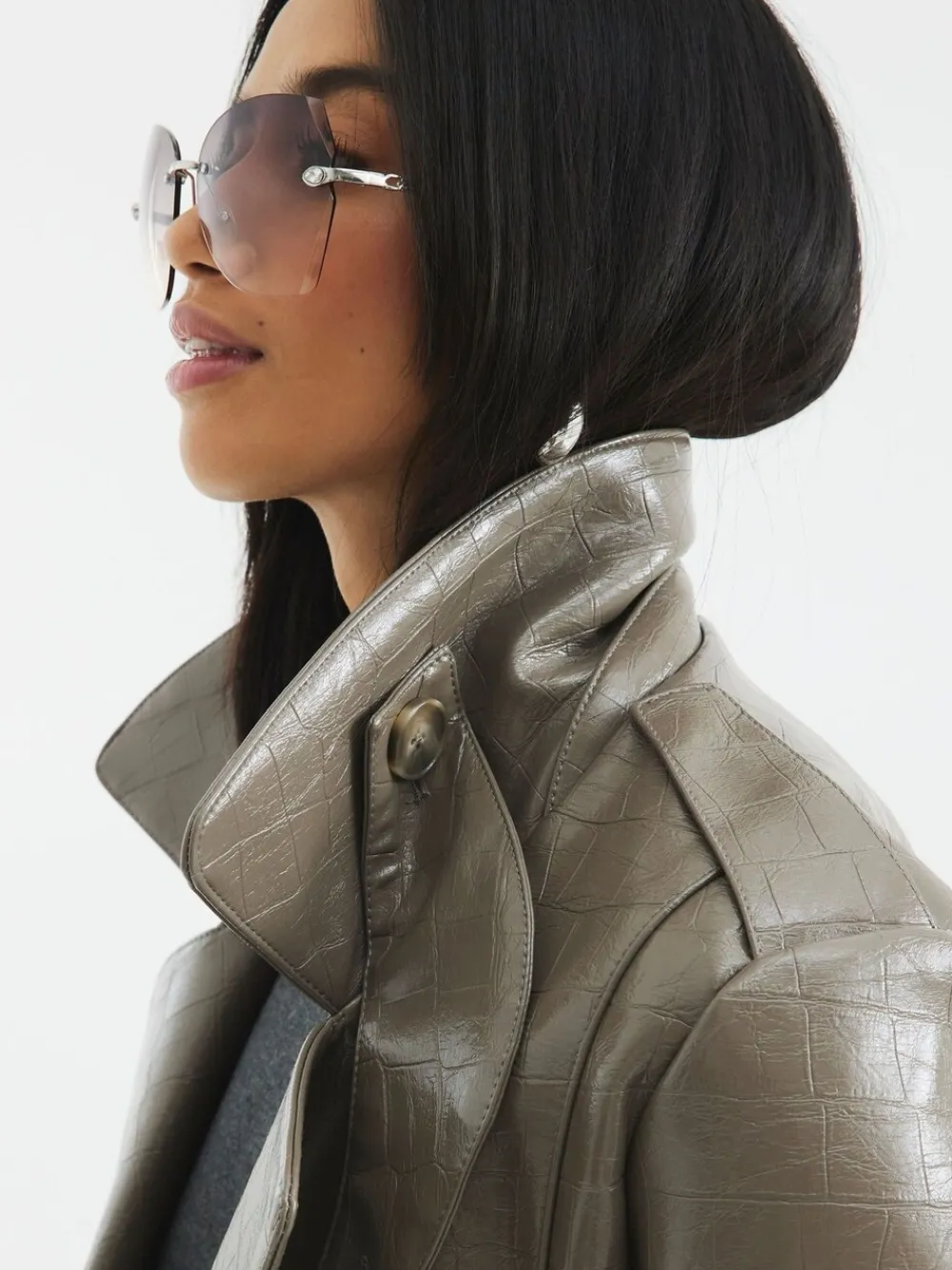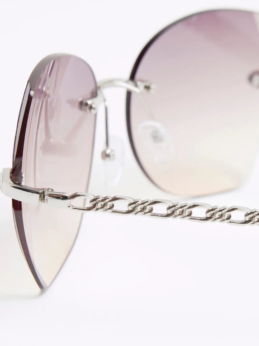 Oversized Rimless Tinted lenses Silver chain link detail 100% metaal.