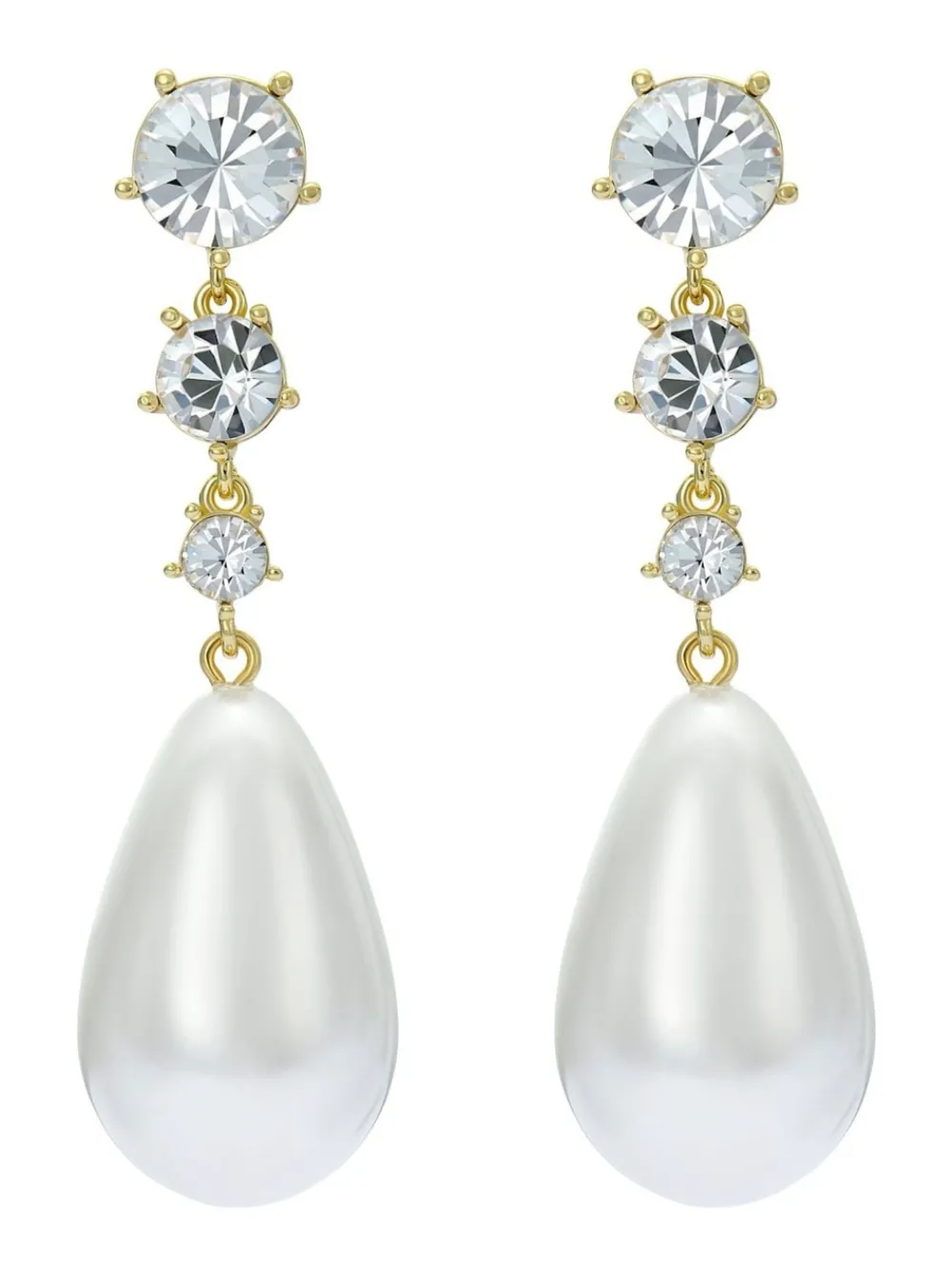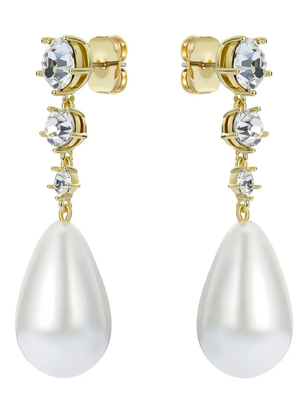 Verwen uzelf met luxe met de Pearsti Statement Crystal Bead Drop-oorbellen van Ted Baker. Deze oorbellen zijn voorzien van een grote, peervormige imitatieparel, die elegant hangt aan een delicate rij fijne Europese kristallen. Ze zijn afgewerkt met een Goudkleurige afwerking en worden geleverd in een signature Ted Baker-geschenkdoos. Ze zijn dus het perfecte cadeautje voor uzelf of een attent cadeau voor iemand speciaal. 53% Glass, 30% Brass, 15% Crystal, 2% Stainless steel.