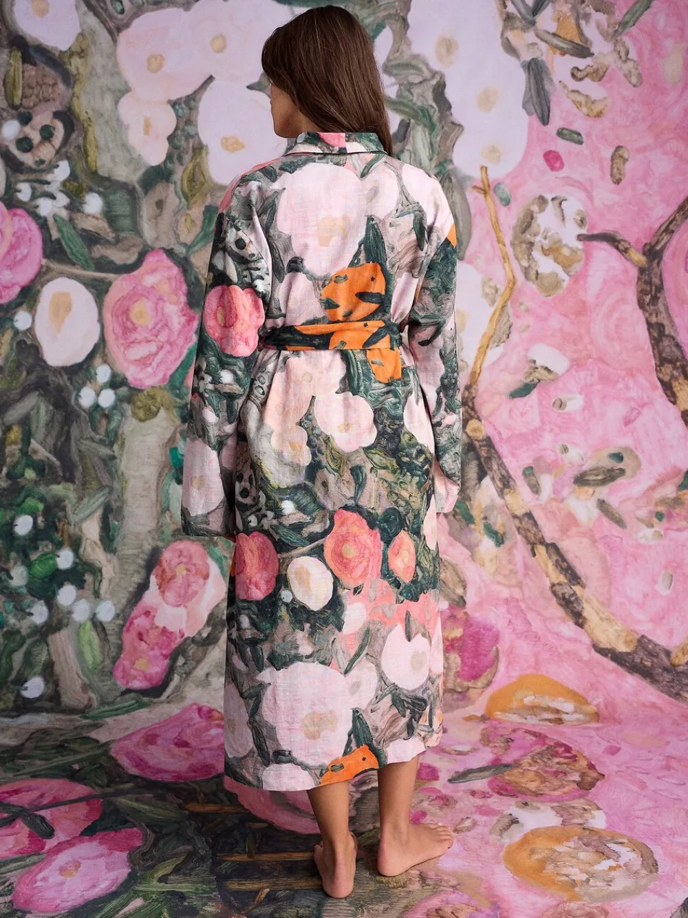 Step into easy elegance with this pink floral dressing gown, an exclusive piece by Benjamin MacGregor. The all-over floral pattern and delicate lightweight fabric make it incredibly comfy for relaxing or layering. For a complete look, a matching slip dress is also available. Exclusive Benjamin MacGregor design All-over floral pattern Lightweight and comfy Matching night slip dress available Machinewasbaar. 100% katoen. Waarschuwing: weg houden bij vuur en vlammen.