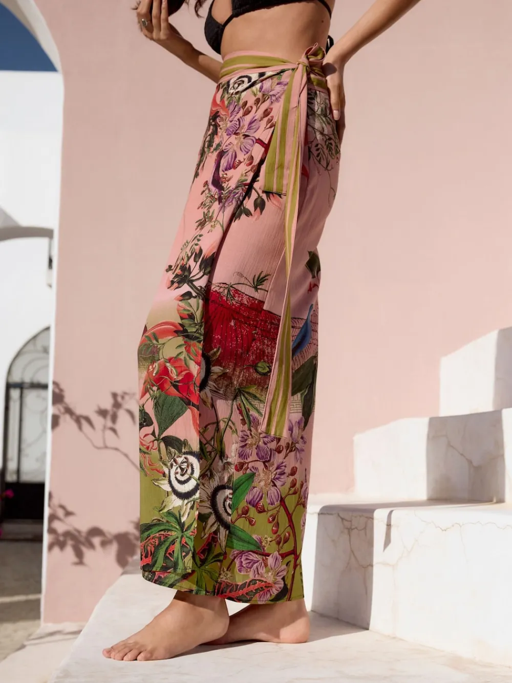 Add a touch of artistry to your holiday wardrobe with this maxi sarong from the Kew Collection. The beautifully detailed scenic floral print and smooth fabric make it a sophisticated cover-up. It’s an elegant and versatile piece for layering over swimwear, perfect for wearing from the poolside to dinner. Maxi length Scenic floral print Tie fastening 93% LENZING™ ECOVERO™-viscose, 7% nylon.