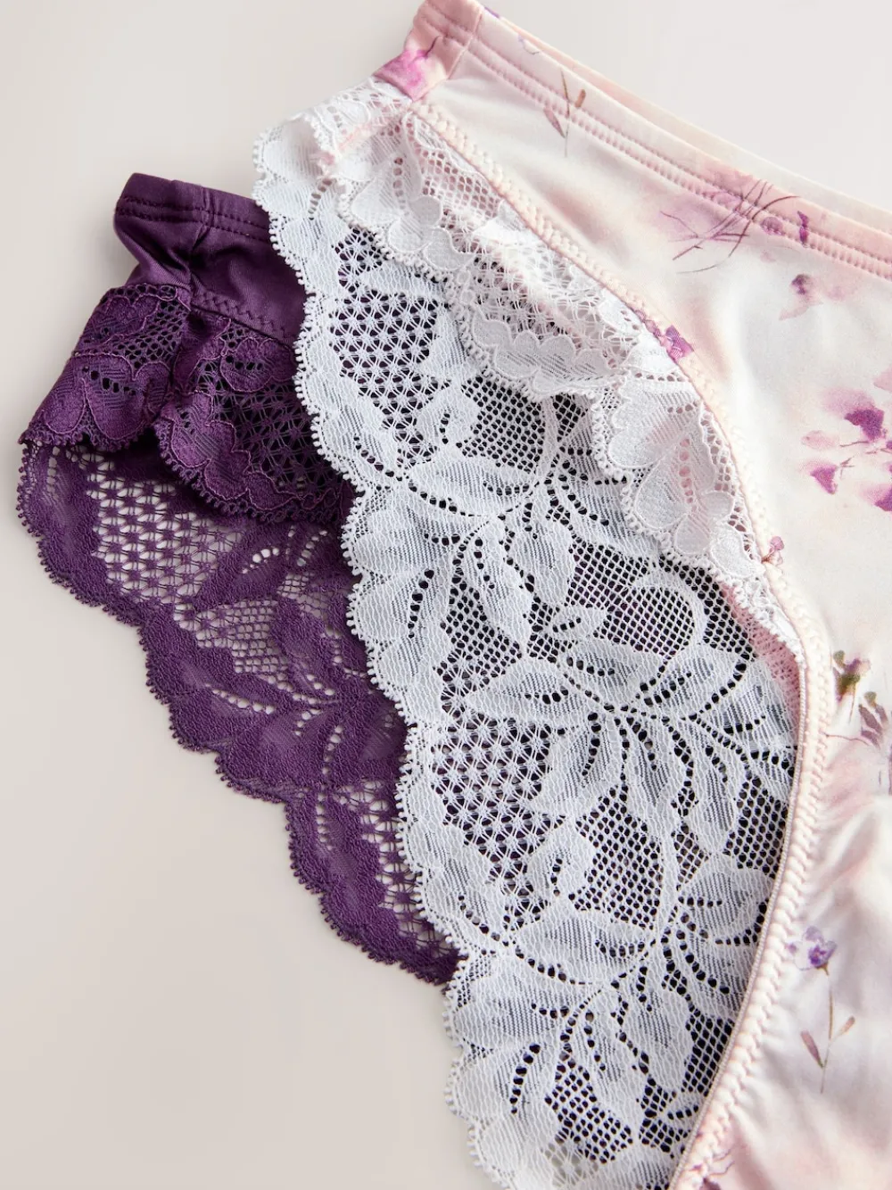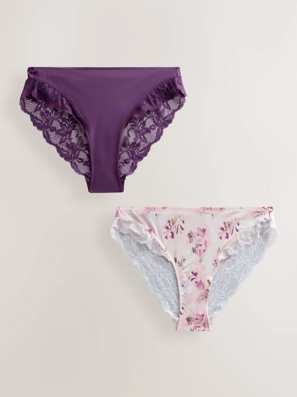 Plum Paars/Bloemenprint – Onderbroek met hoge pijpen 2 Pak*Next