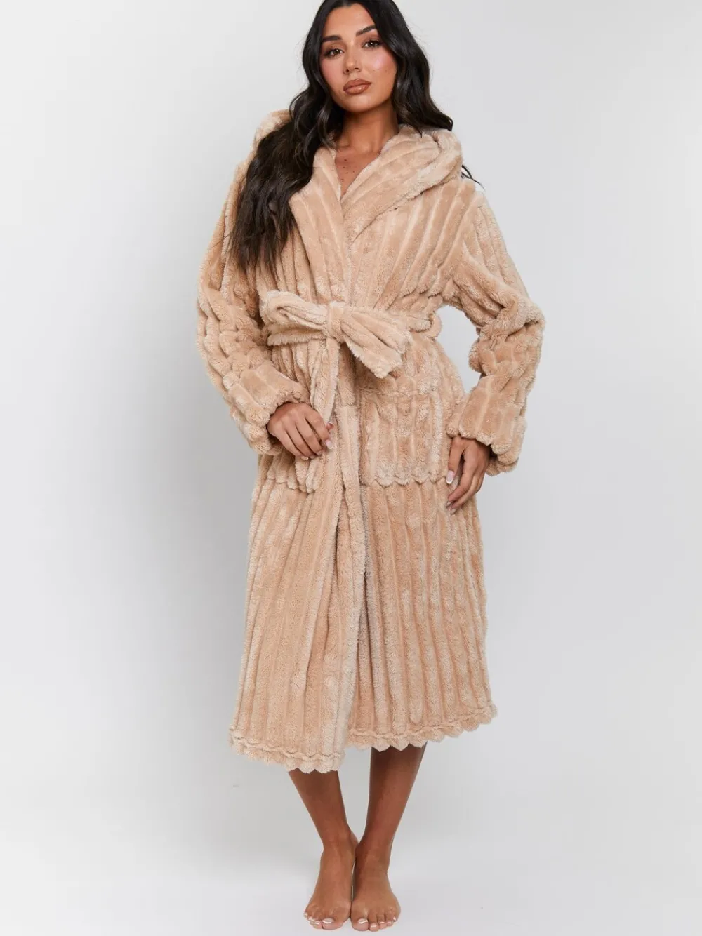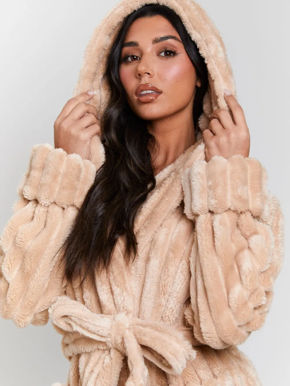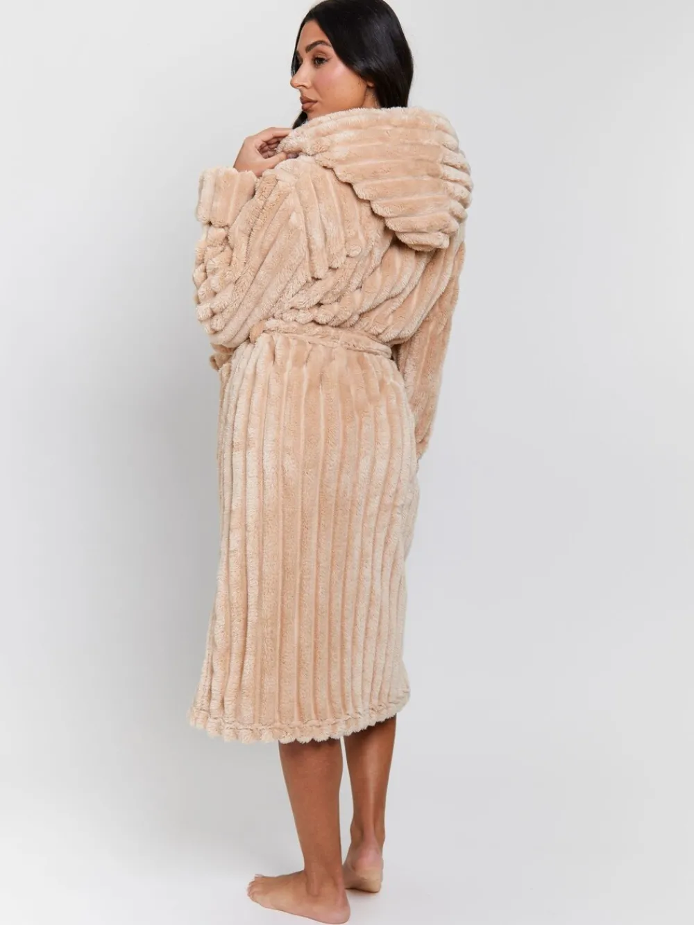 Plush Ridged Fleece Midi Hooded Dressing Gown*Loungeable New
