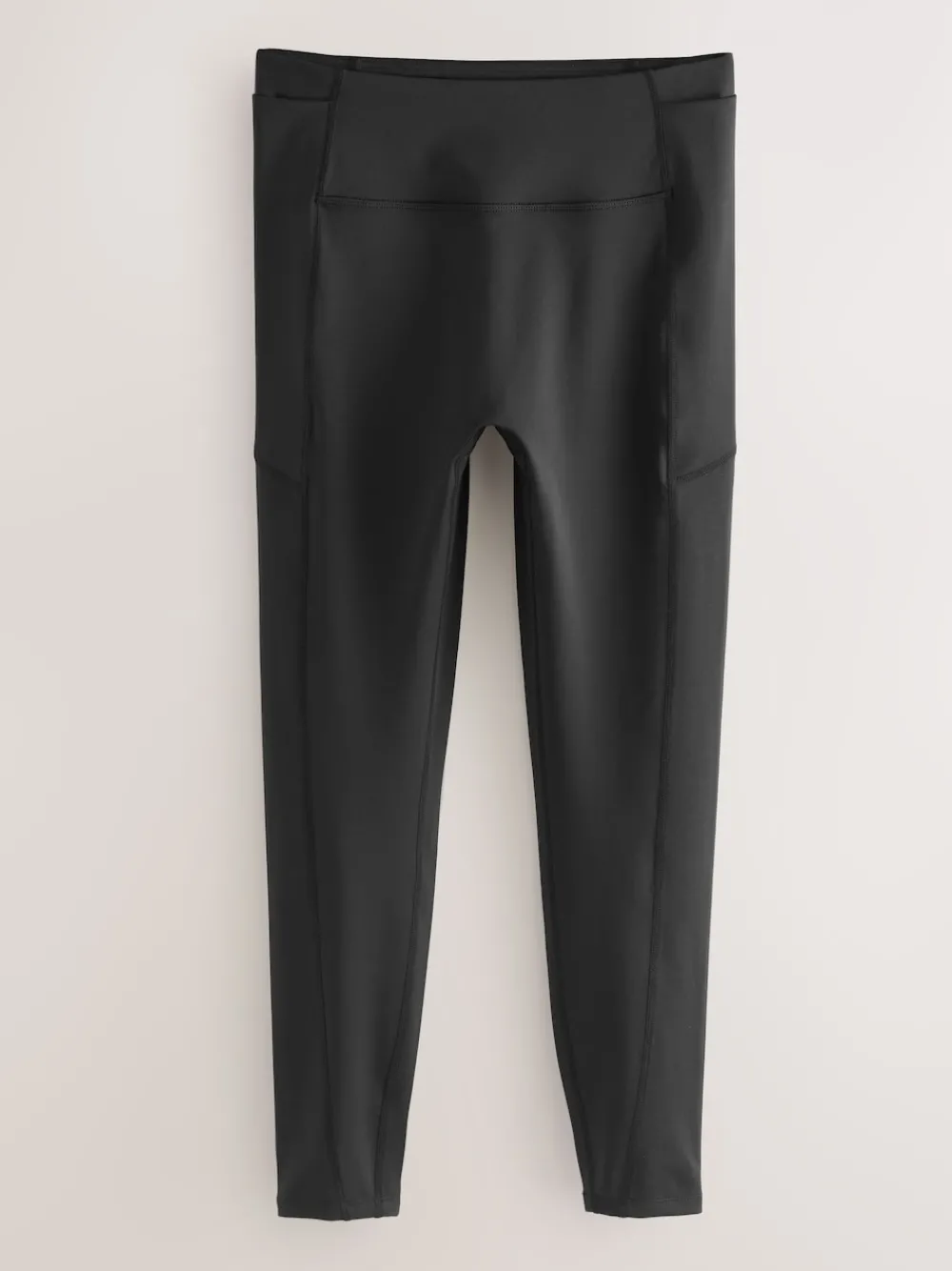 Elevate your activewear with these sculpting black sports leggings. Crafted from a lightweight, four-way stretch fabric, their high-waisted design and seamless front provide a flattering, squat-proof fit. Finished with handy side pockets for on-the-go essentials. Four-way stretch fabric High waist and no front seam Squat-proof Side pockets Regular voor binnenbeenlengte 29″ / 74 cm. 75% gerecycled polyester, 25% elastaan.