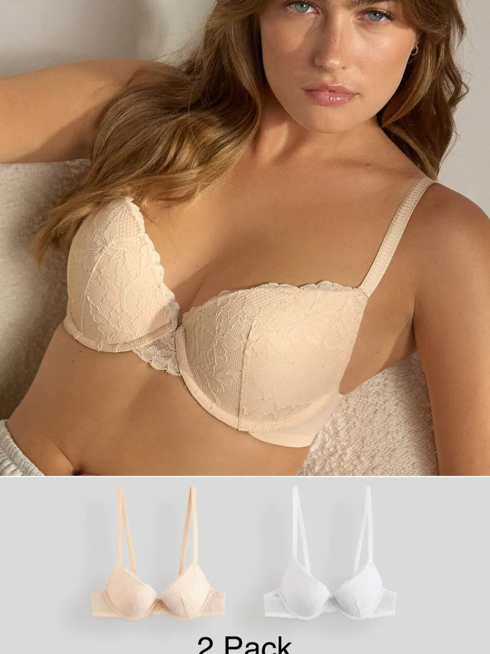 Onze flatterende en vrouwelijke kanten bh 2 -set is ontworpen om uw silhouet te accentueren. De bh heeft een mooie kanten afwerking, een diep decolleté en push-up cups, waardoor u zich net zo goed voelt als u eruitziet. Stijlvol met open halslijnen en een nauwsluitende pasvorm. En het allerleukste? Je hebt er twee, dus je kunt ze in verschillende richtingen draaien.naar jouw favorieten stapel. Machinewasbaar. 2 x beha van 58% nylon, 29% polyester, 13% elastaan. CoppaFeel! is de enige op jongeren gerichte borstkankerbewustzijnsorganisatie in het VK met als missie om elke jongere zijn of haar borst te laten controleren. Next is er trots op hun bra-hijackcampagne te steunen.