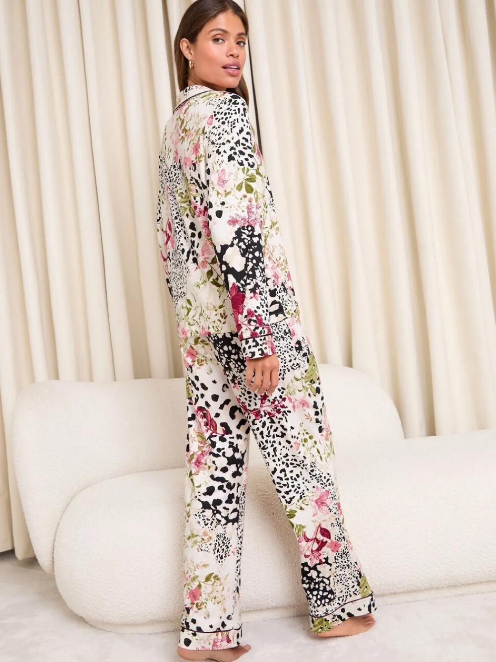 – Print Jersey Long Sleeve and Trousers Satin Trim Pyjamas Set*Lipsy Best