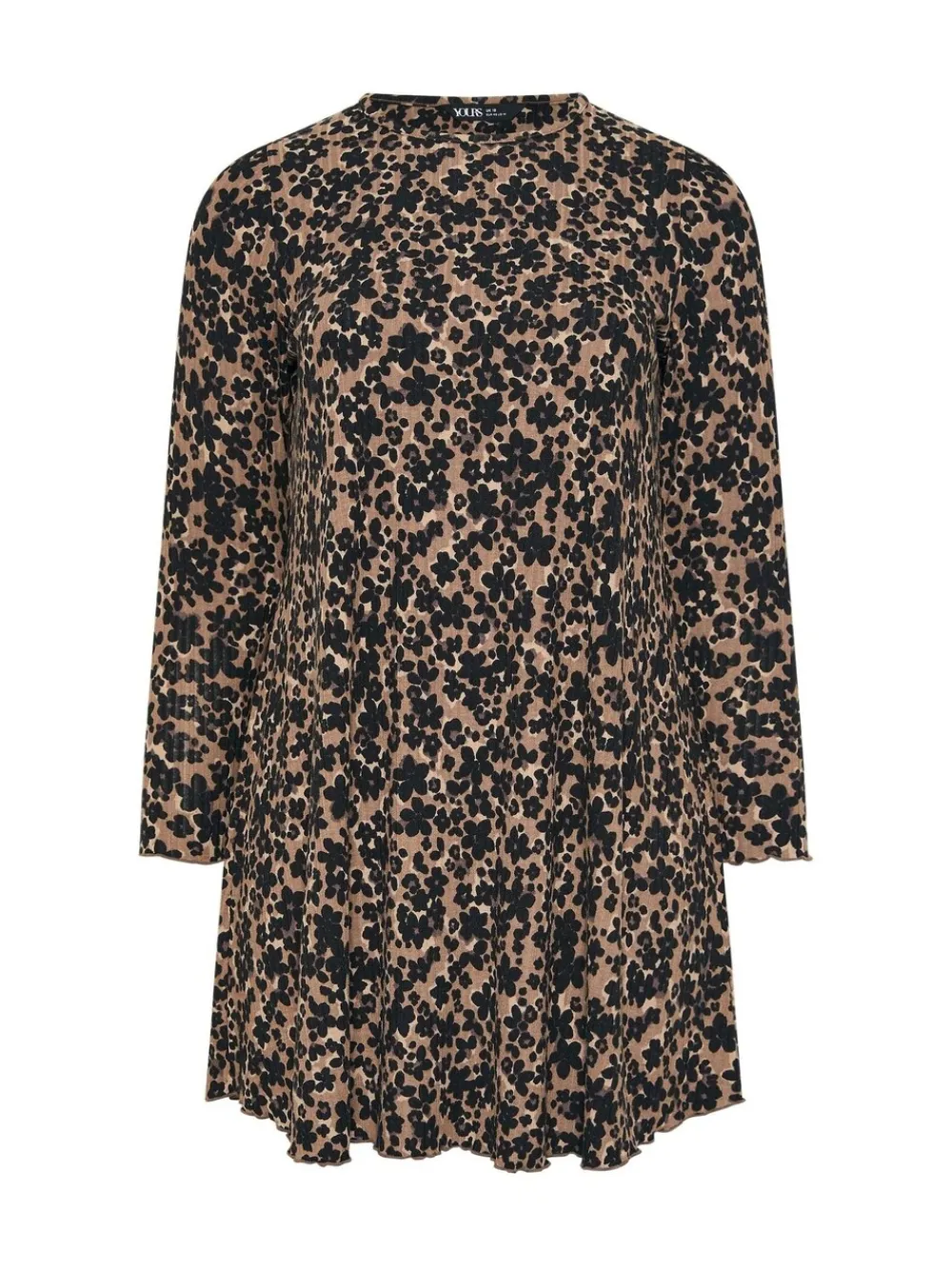 Product Description: Make a statement effortlessly with the YOURS Curve Brown Leopard Ribbed Tunic Dress. Crafted from soft, stretch ribbed fabric, this tunic dress is designed to flatter your curves while offering all-day comfort. The bold leopard print adds a trendy touch, and the relaxed tunic fit makes it easy to style for day or night. Pair with boots or heels for versatile looks. Features: Soft, stretch ribbed fabric for comfort and flexibility Relaxed tunic fit designed to flatter YOURS Curve Bold brown leopard print for a stylish statement Long sleeves for added warmth Easy to style with boots, leggings, or heels Perfect for casual wear, work, or evenings Made from a comfortable jersey fabric Polyester, Elastane Length from approx: 99cm/38.9 Machine washable Machinewasbaar. 95% polyester, 5% elastaan.