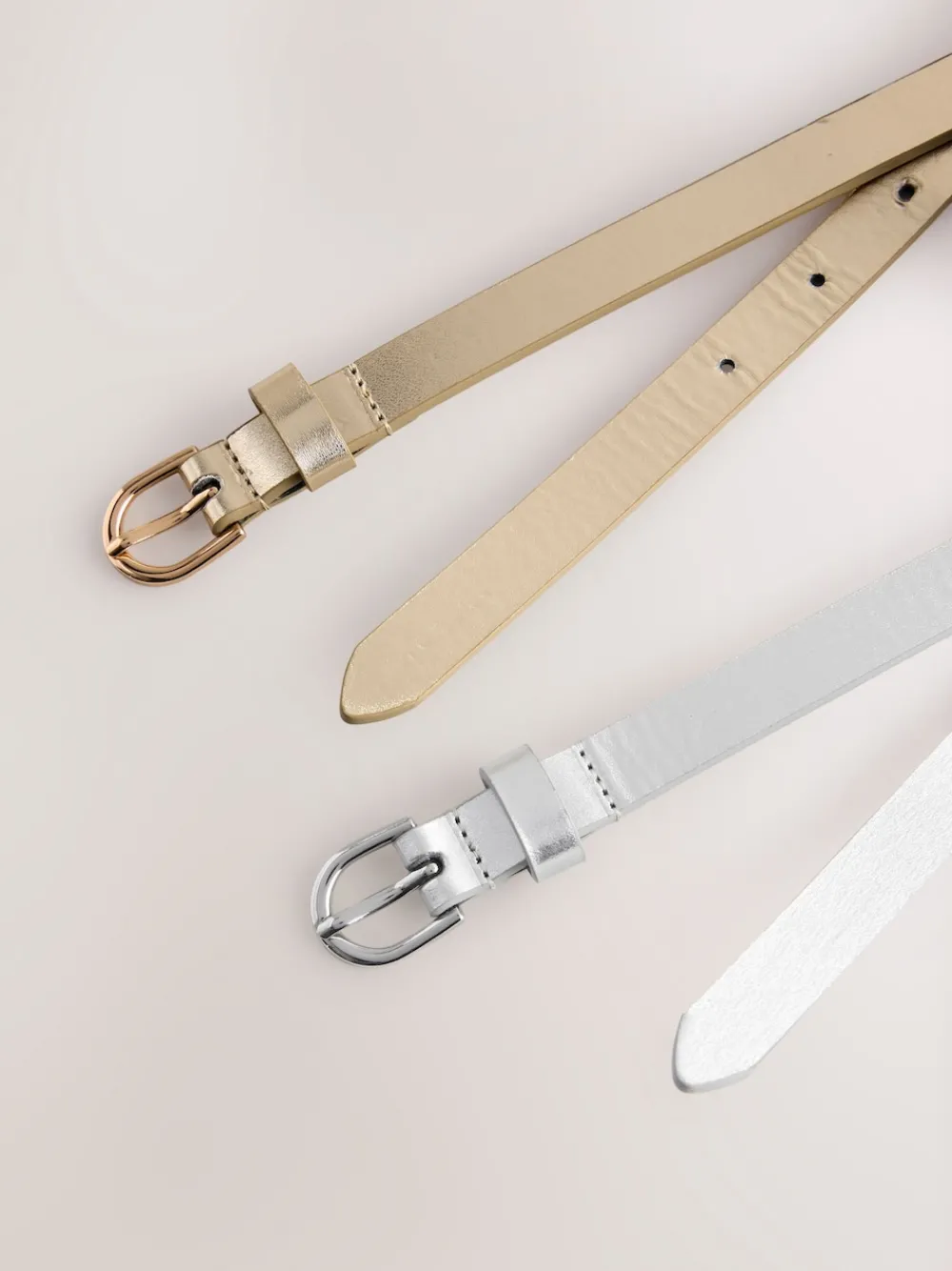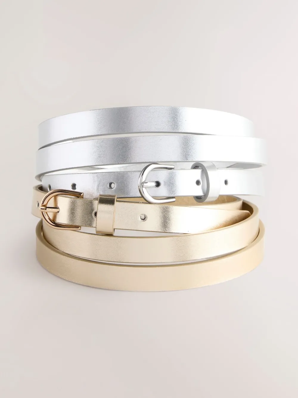 Deze set van twee Metallic Goud en Zilver riemen is gemaakt van PU en heeft een smalle breedte voor een strakke afwerking. 2 pak 100% PU Skinny breedte 100% polyurethaan.