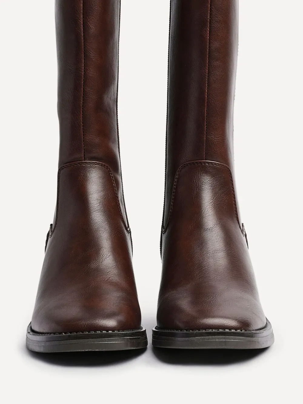 Unleash your style with our Reason high leg boots. Featuring a chic square toe and a stretch back gusset, set on a sturdy block heel. Designed with a cushioned insole and soft fur lining, these boots offer the perfect blend of comfort and sophistication. Boots Length: 36cm Hakhoogte 6 cm. Bovenwerk – 100% andere vezels, Voering. en sokken – 100% overige vezels. Zool – 100% rubber.