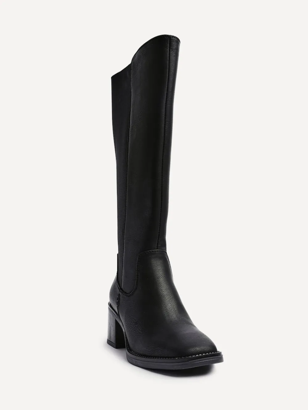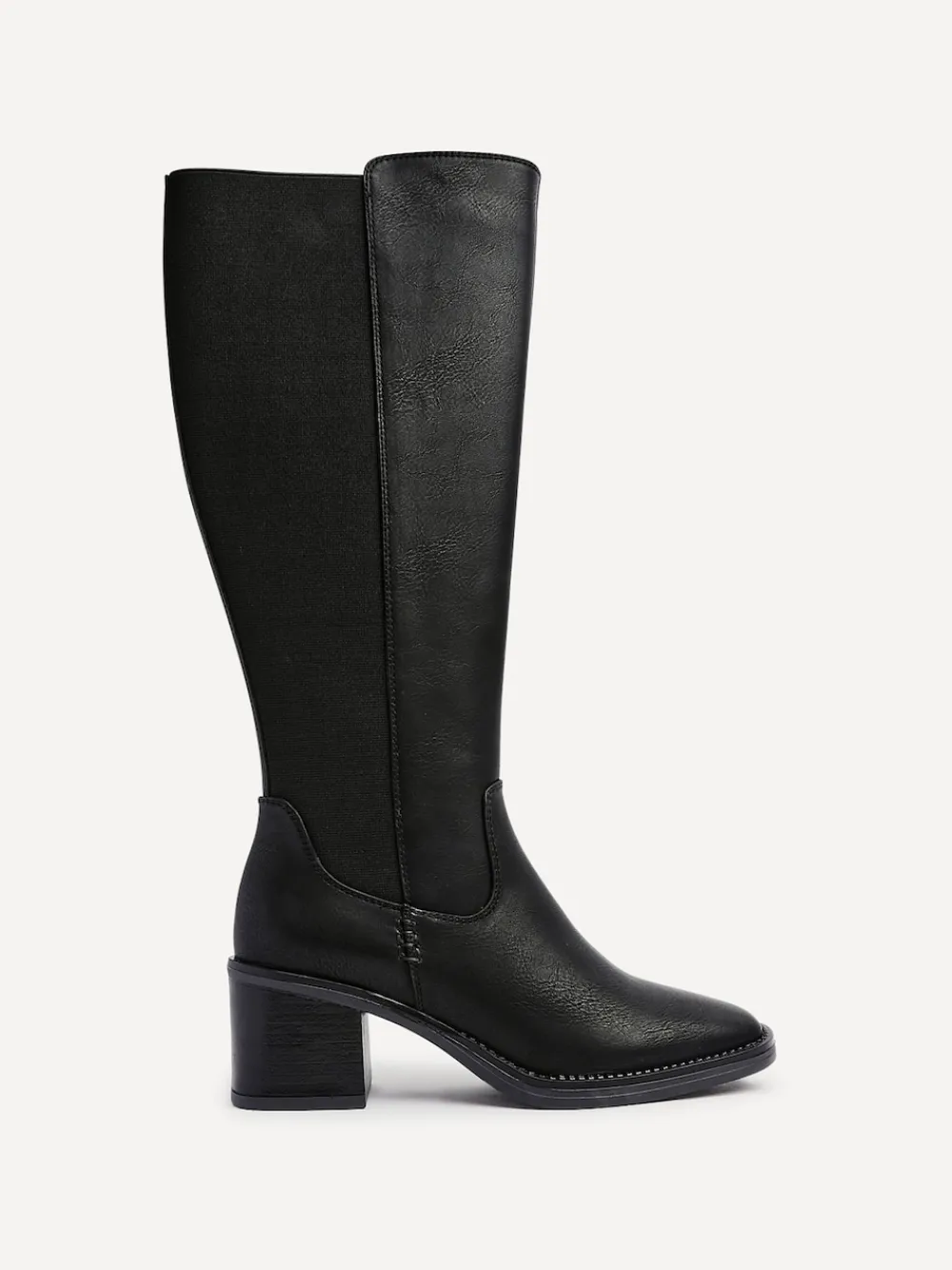 Unleash your style with our Reason high leg boots. Featuring a chic square toe and a stretch back gusset, set on a sturdy block heel. Designed with a cushioned insole and soft fur lining, these boots offer the perfect blend of comfort and sophistication. Boots Length: 36cm Hakhoogte 6 cm. Bovenwerk – 100% andere vezels, Voering. en sokken – 100% overige vezels. Zool – 100% rubber.
