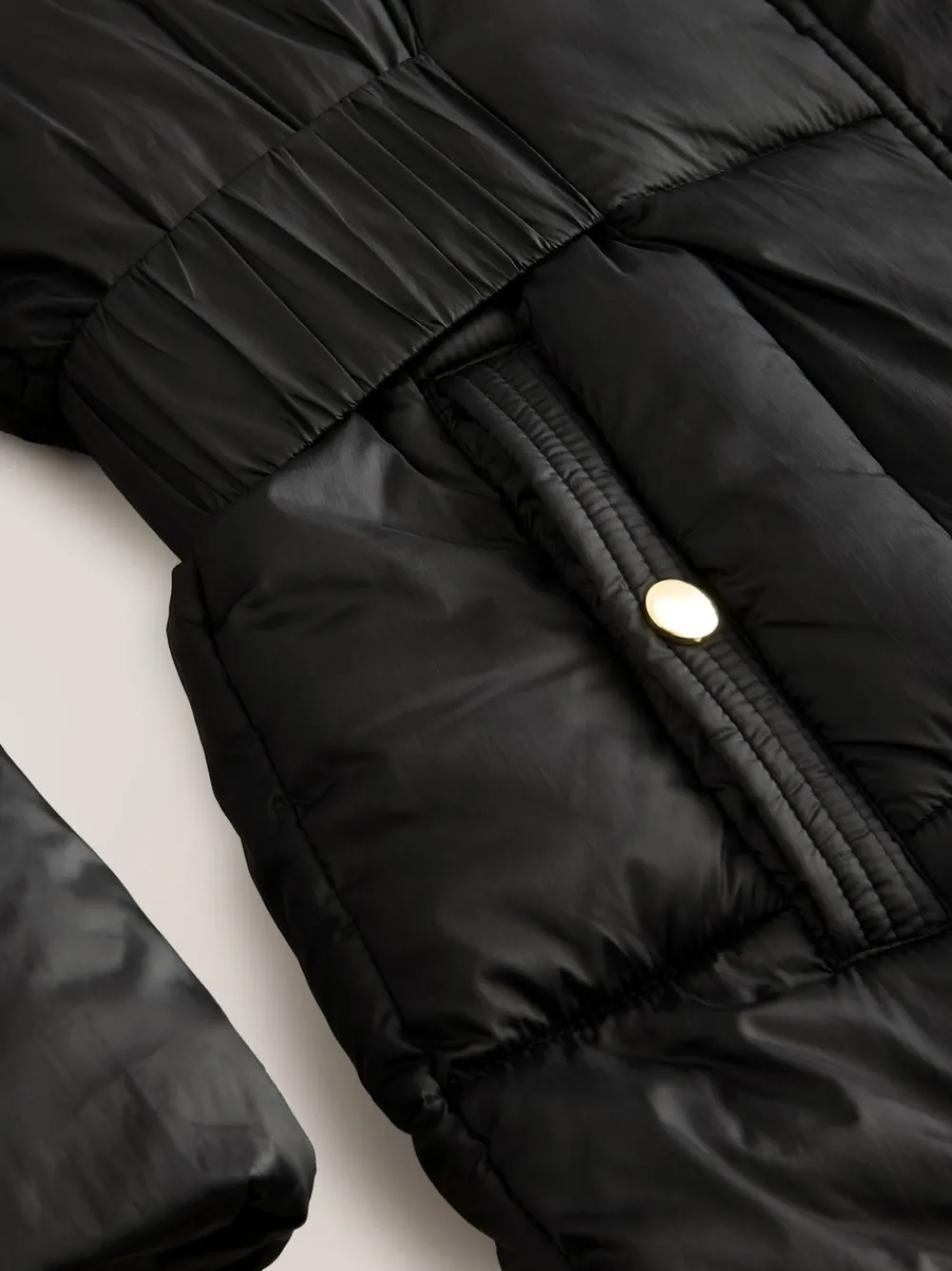 Stay warm and fabulous all winter in this shower-resistant, padded longline coat. Featuring a flattering waisted fit and a cosy hood, it’s designed for ultimate comfort and style. The popper-fastened side splits and faux fur trim collar elevate this cold-weather essential for a chic finish. Longline length Shower-resistant finish Faux fur trim collar Popper and zip fastening Side splits with poppers Waisted detailing Elasticated cuffs Side pockets with poppers Standaard van het midden van de nek tot de zoom 50.5″ / 128 cm. Machinewasbaar. Hoofdmateriaal 55% gerecycled polyester, 45% nylon. Voering 100% gerecycled polyester. Vulling 100% gerecycled polyester. Artikelen met het curve-logo zijn verkrijgbaar in de maten 18 en groter. Onze tall collectie is ontworpen om te passen bij vrouwen van 5’10” en langer. Dit is verhoudingsgewijs vergroot door het lichaam, de benen en de mouwen om de perfecte pasvorm te bereiken. Verkrijgbaar in maat 8-20.