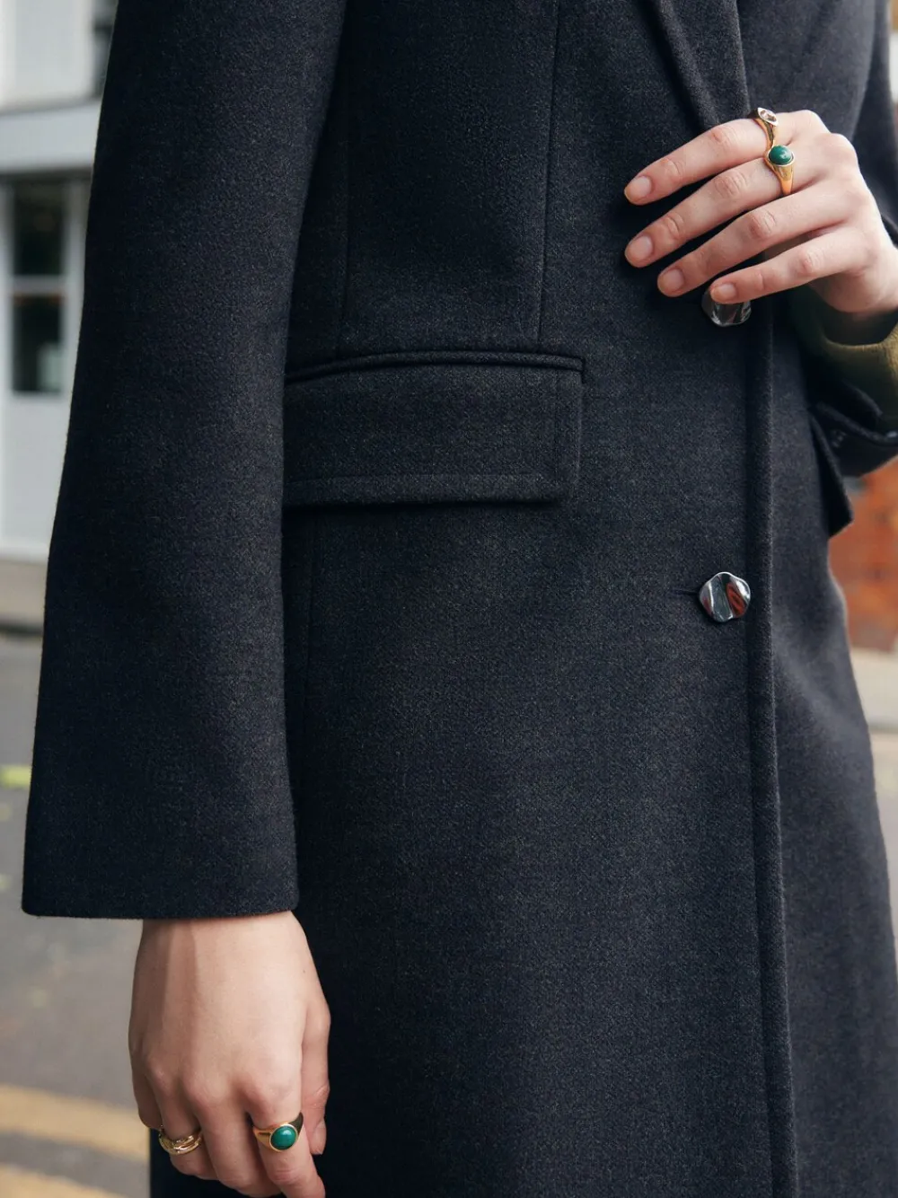 Embrace timeless style with this revere coat, a perfect addition to your autumn-winter wardrobe. The single-button fastening, classic revere collar and side pockets provide a polished look, while the lined interior ensures comfort. A versatile everyday piece that’s easy to style for any occasion. Lined interior Revere collar Button fastening Side pockets Standaard van het midden van de nek tot de zoom 48.5″ / 123 cm. Door gespecialiseerde stomerij laten reinigen Buitenkant 80% gerecycled polyester, 10% viscose, 10% acryl. Voering 100% gerecycled polyester. Artikelen met het curve-logo zijn verkrijgbaar in de maten 18 en groter.