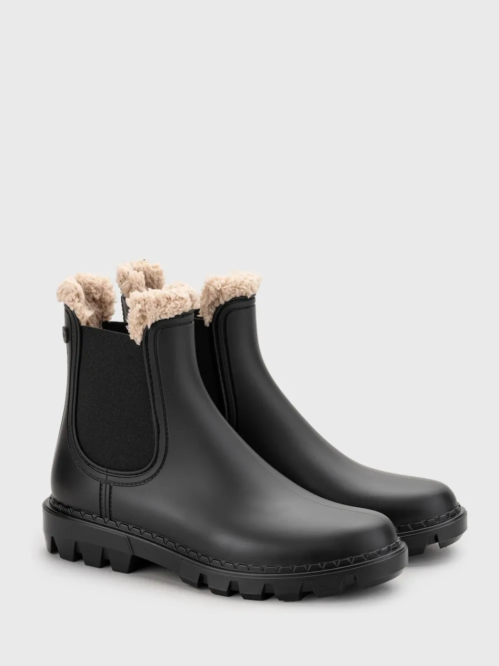 Deze enkellaarzen met voering van imitatiebont zijn de perfecte combinatie van stijl en functionaliteit. De matte afwerking zorgt voor een strakke look, waardoor ze perfect te combineren zijn met elke casual outfit. De voering van imitatiebont houdt je voeten warm bij koud weer. Hierdoor zijn ze een prima optie voor buitenactiviteiten of gewoon boodschappen doen in de stad. Bovenwerk – textiel. Voering en voetbed – overige materialen, zool – Andere materialen.