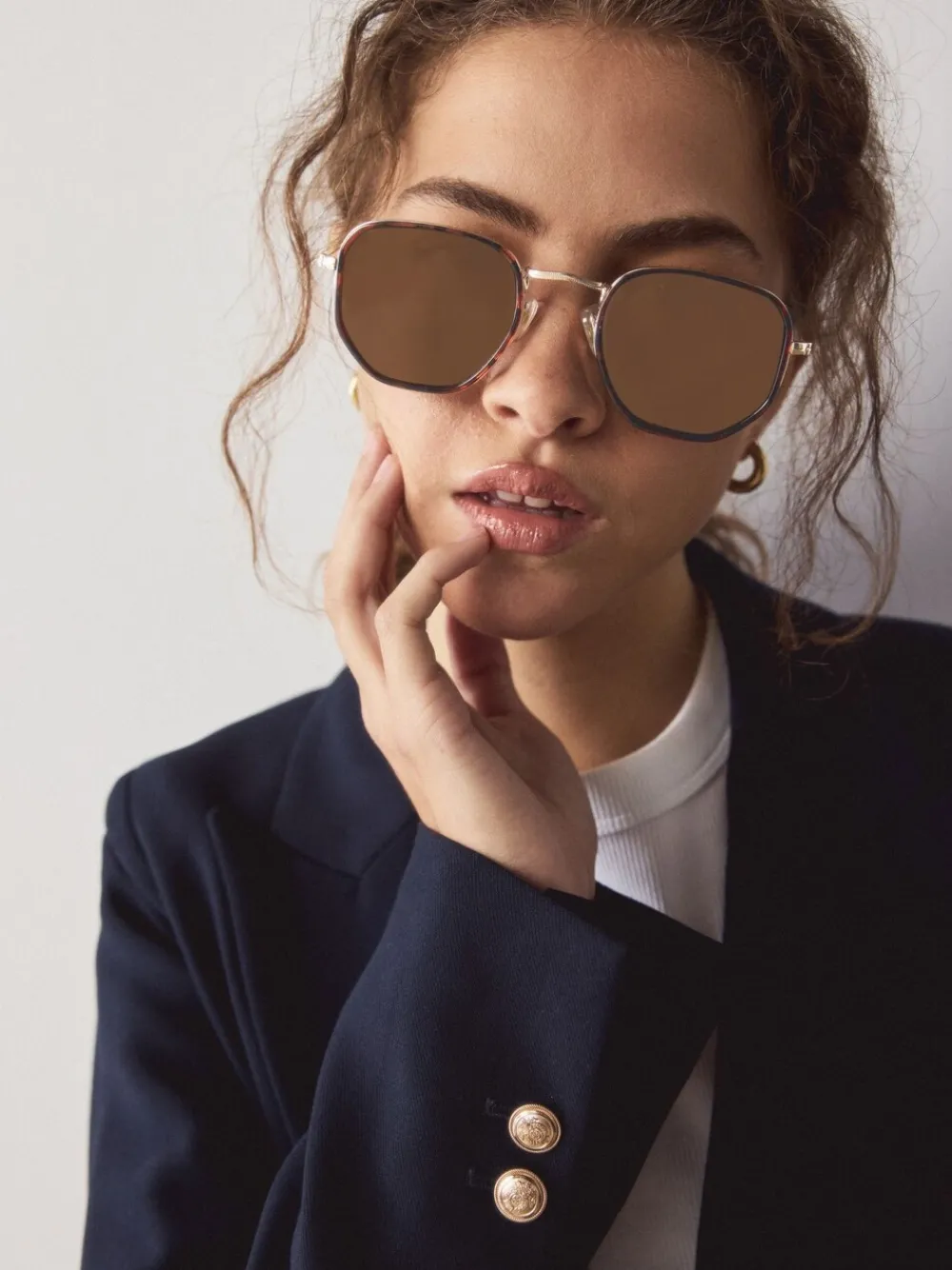 Main 50% Metal, 30% Recycled polycarbonate, 20% Cellulose Propionate. Lens 100% Polycarbonate. Gepolariseerde lenzen zijn gecoat met een speciale film die verblinding en de schadelijke effecten van UV-licht helpt verminderen., Hoge bescherming tegen zonlicht