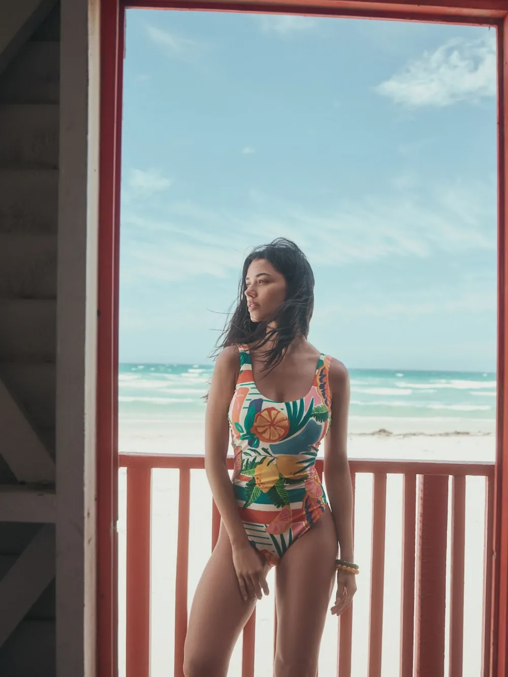 Rood/groen tropisch – Buikcorrigerend DD+ badpak met beugels en ronde hals*Next Clearance