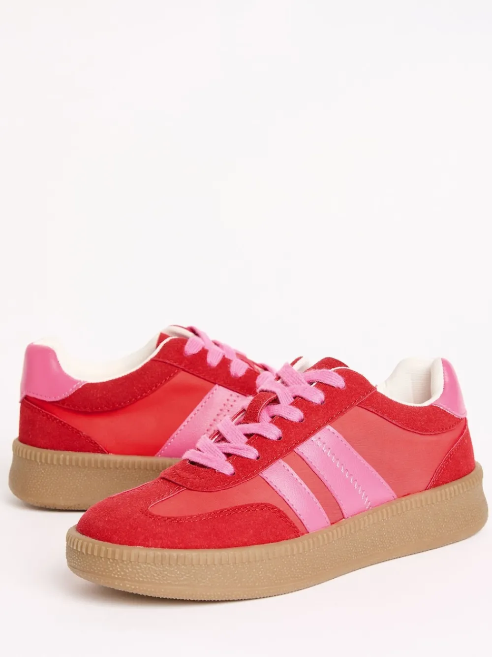 Rood/roze – Lace Up Retro Gumsole Sports Trainers*Friends Like These Outlet