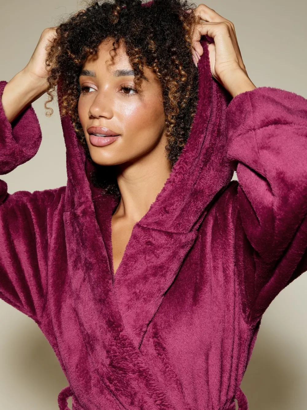 Made from luxuriously fluffy fabric, the grey Rosa cosy robe by KBX warmly hugs your body for the most comfortable fit. Designed with a hood, wide sleeves and a classic tie waist belt. Machinewasbaar. 100% polyester.