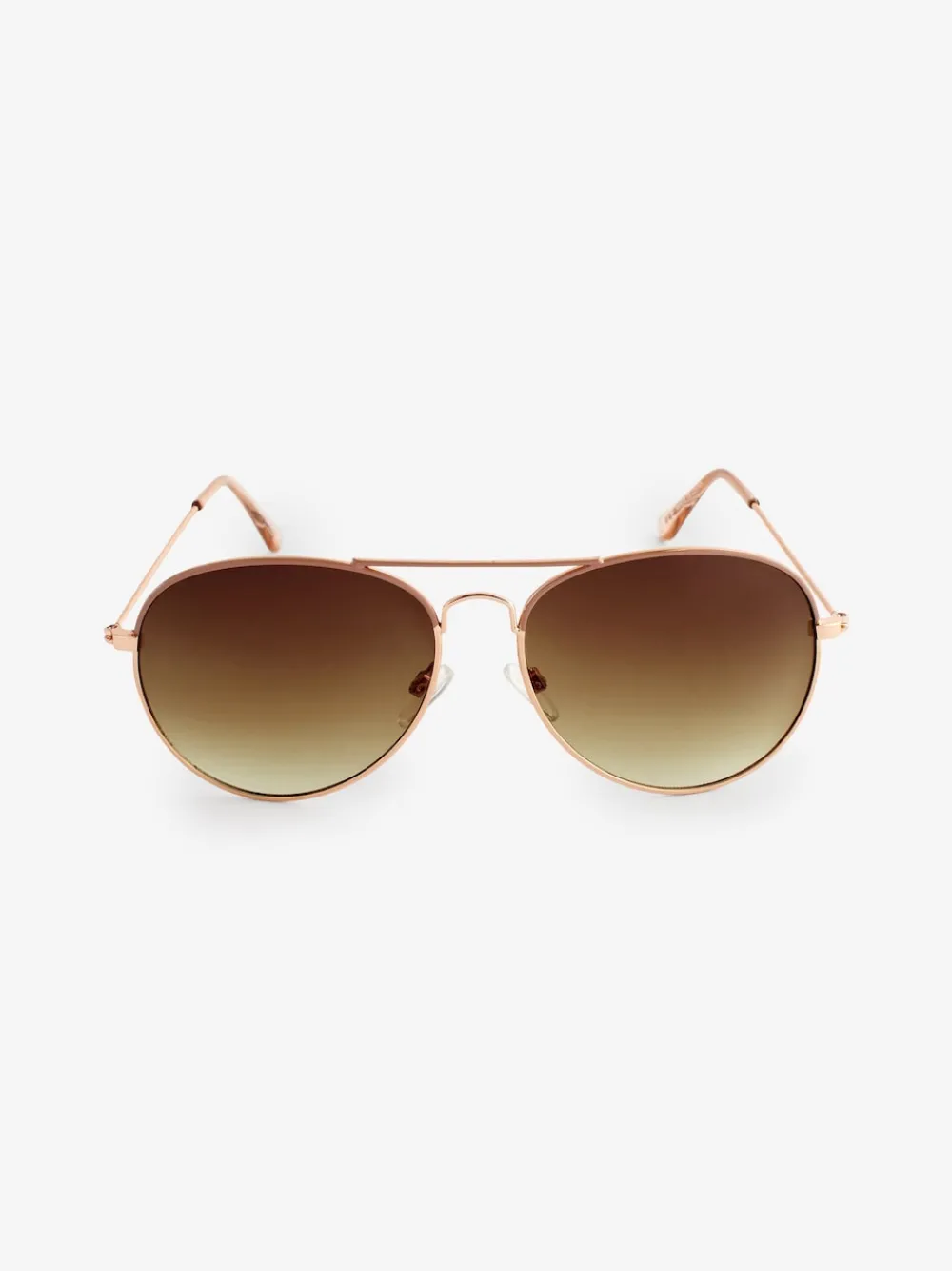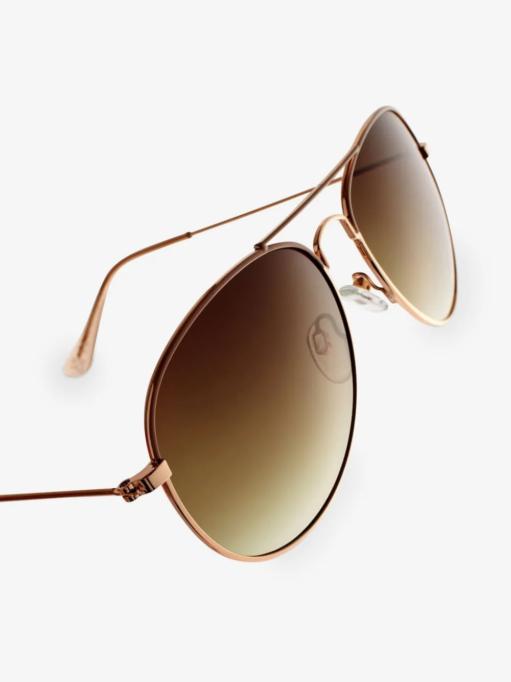 Geef uw stijl bij warm weer een boost met onze klassieke roségouden pilotenzonnebril. Ontworpen in een tijdloos silhouet met lenskleurverloop. Aviator zonnebril met gegradueerde lenskleur