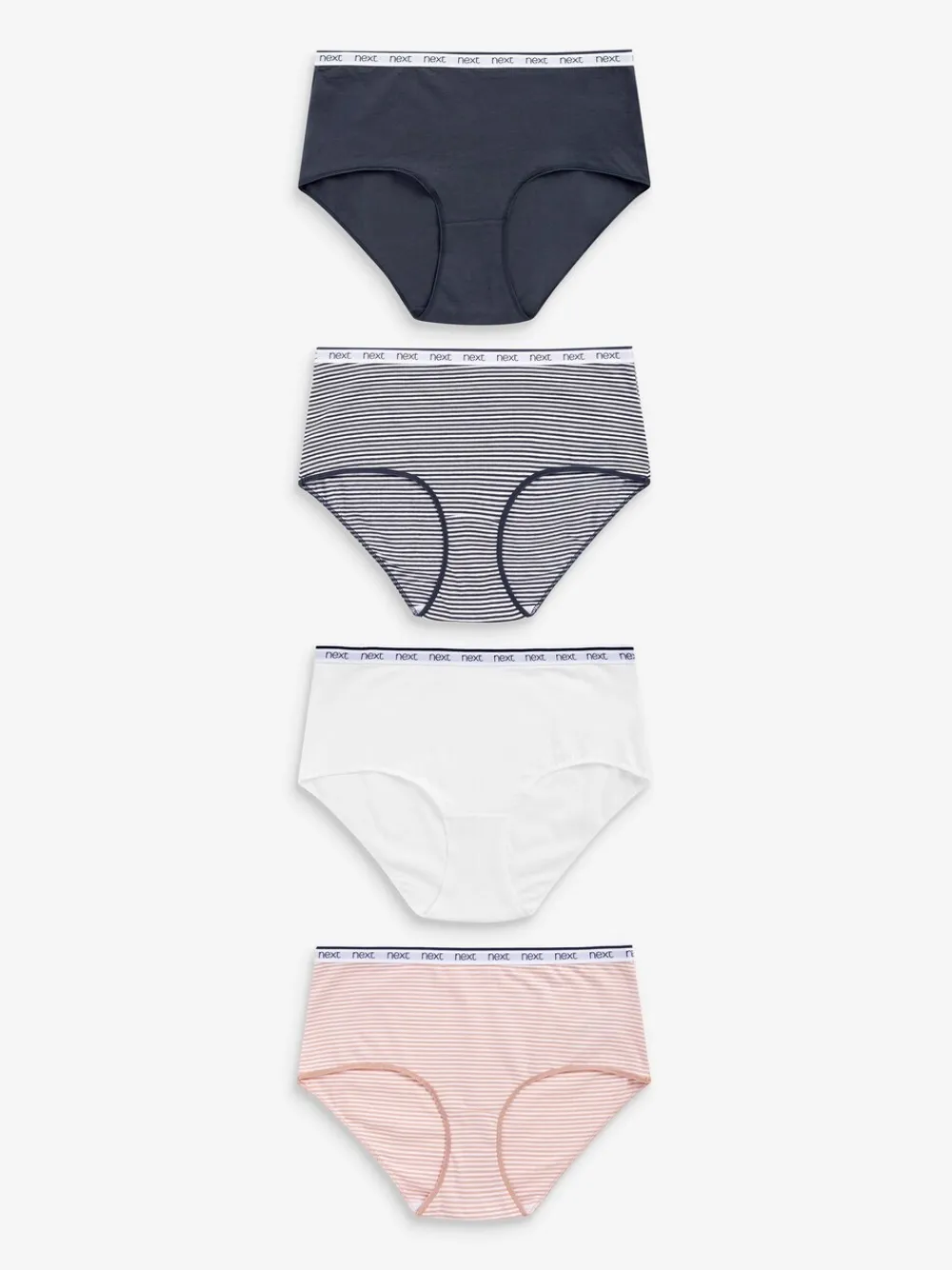 Roze/blauw gestreept – 4 Katoenen slipjes met logotailleband*Next Clearance