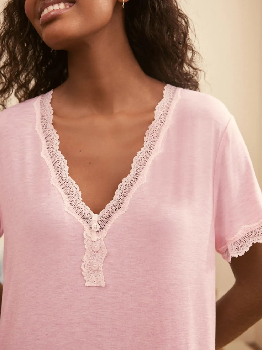 Roze – nachthemd van Modal met kanten rand*Laura Ashley Clearance