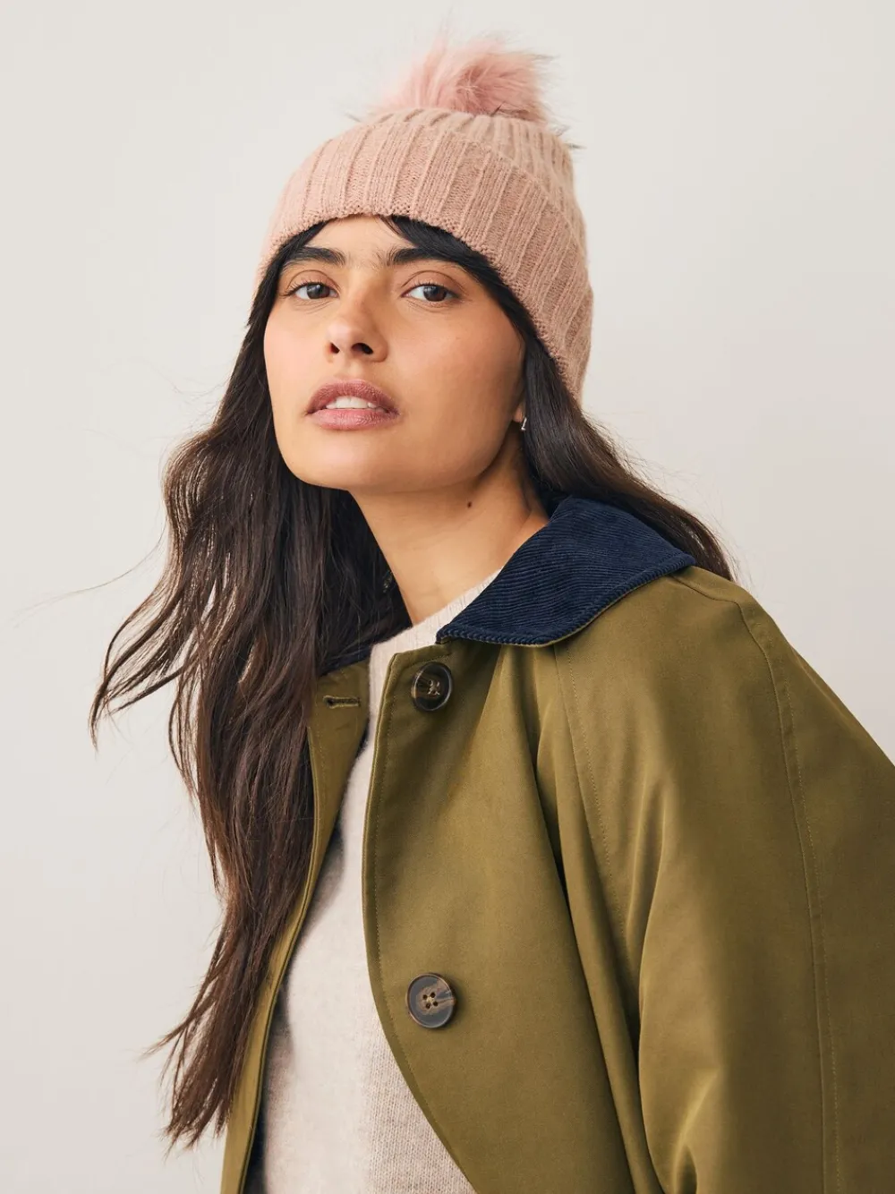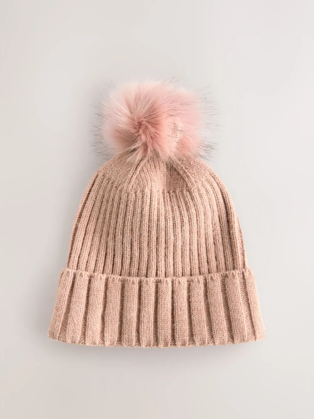 Stay snug and stylish in our rib knit pom pom hat. Rib knit Faux fur pom pom Cosy Hoofdmateriaal 45% acryl, 29% gerecycled polyester, 26% nylon. Bies 58% acryl, 27% polyester, 15% modacryl.