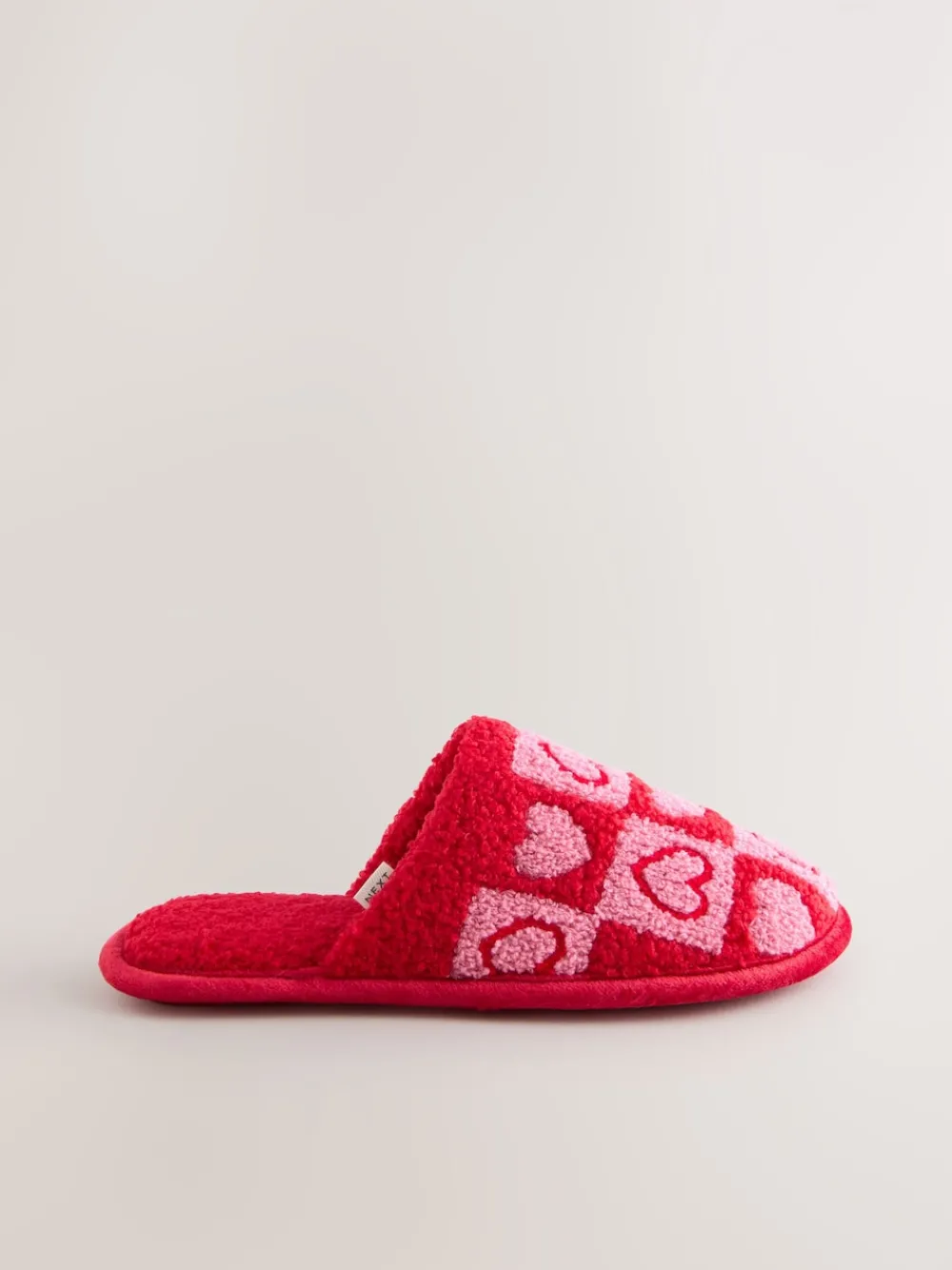 Treat your feet to total comfort with these super comfy mule slippers. The cosy borg fabric is adorned with a fun check heart pattern in vibrant pink and red, making them perfect for Valentine’s Day or gifting. Simply slip them on for instant warmth and softness on relaxed days at home. Super comfy borg fabric Mule slipper style Pink/red check heart pattern Easy slip-on design Bovenwerk – textiel; voering en voetbed – Textiel zool – textiel, overige materialen.