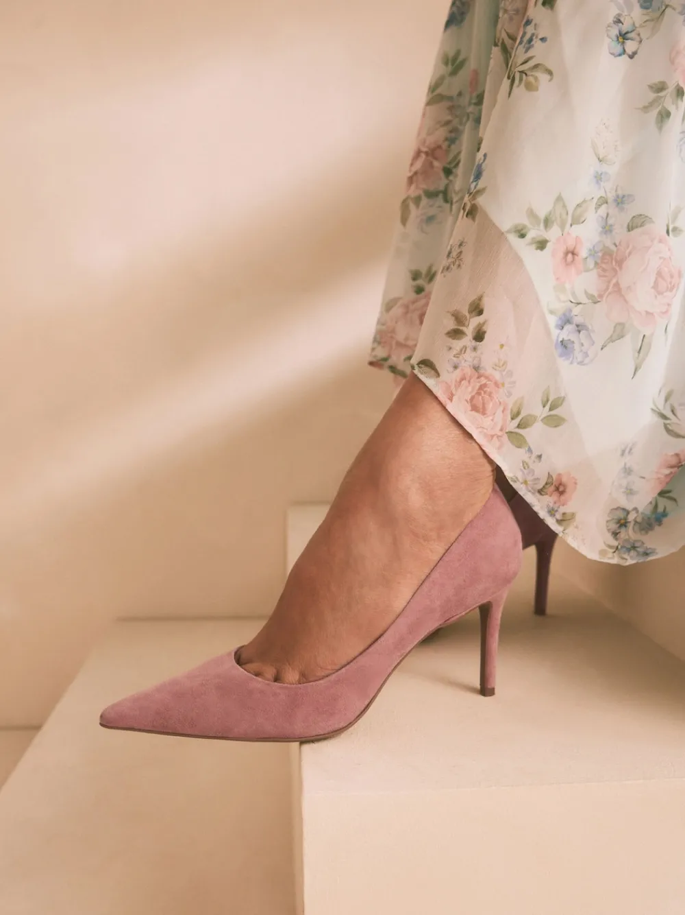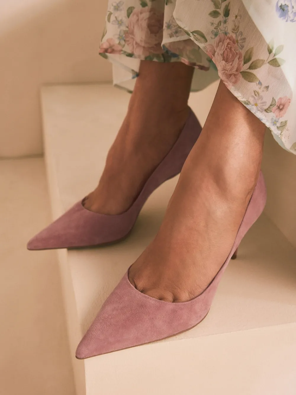 Rozenroze suède – Leren mid-court pumps*Next