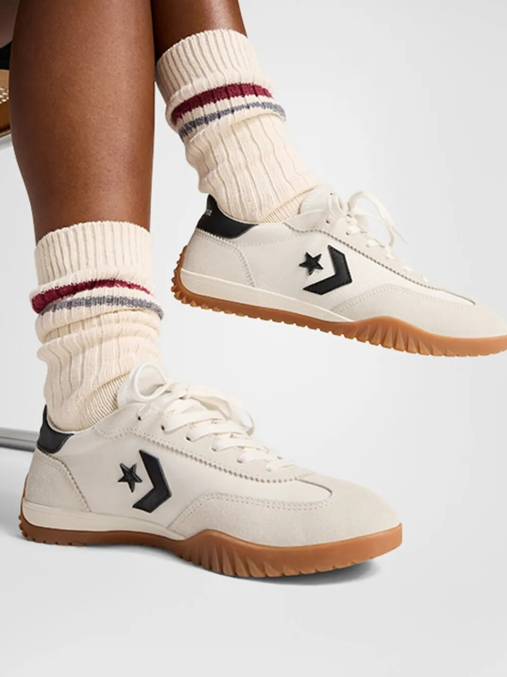 DE RUN STAR—GEËVOLUEERD Maak kennis met de Run Star Trainer: een ode aan sport, stijl en erfgoed. Strakke details en luxe demping passen perfect bij al uw favoriete outfits, dag en nacht. De volgende stap in de Star Chevron legacy is hier. Productdetails: Een duurzaam nylon bovenwerk met suède overlays en leren accenten voor een luxe look en feel Een drielaagse binnenzool van Traagschuim zorgt voor een comfortabele en gedempte loopervaring die zich naar je voet vormt De rubberen buitenzool met grip zorgt voor grip Geperforeerde veterogen en gewaxte veters zorgen voor een premium touch Iconische Star Chevron-, All Star- en Converse-logo’s Bovenwerk – textiel. Voering en voetbed – Textiel zool – Andere materialen.