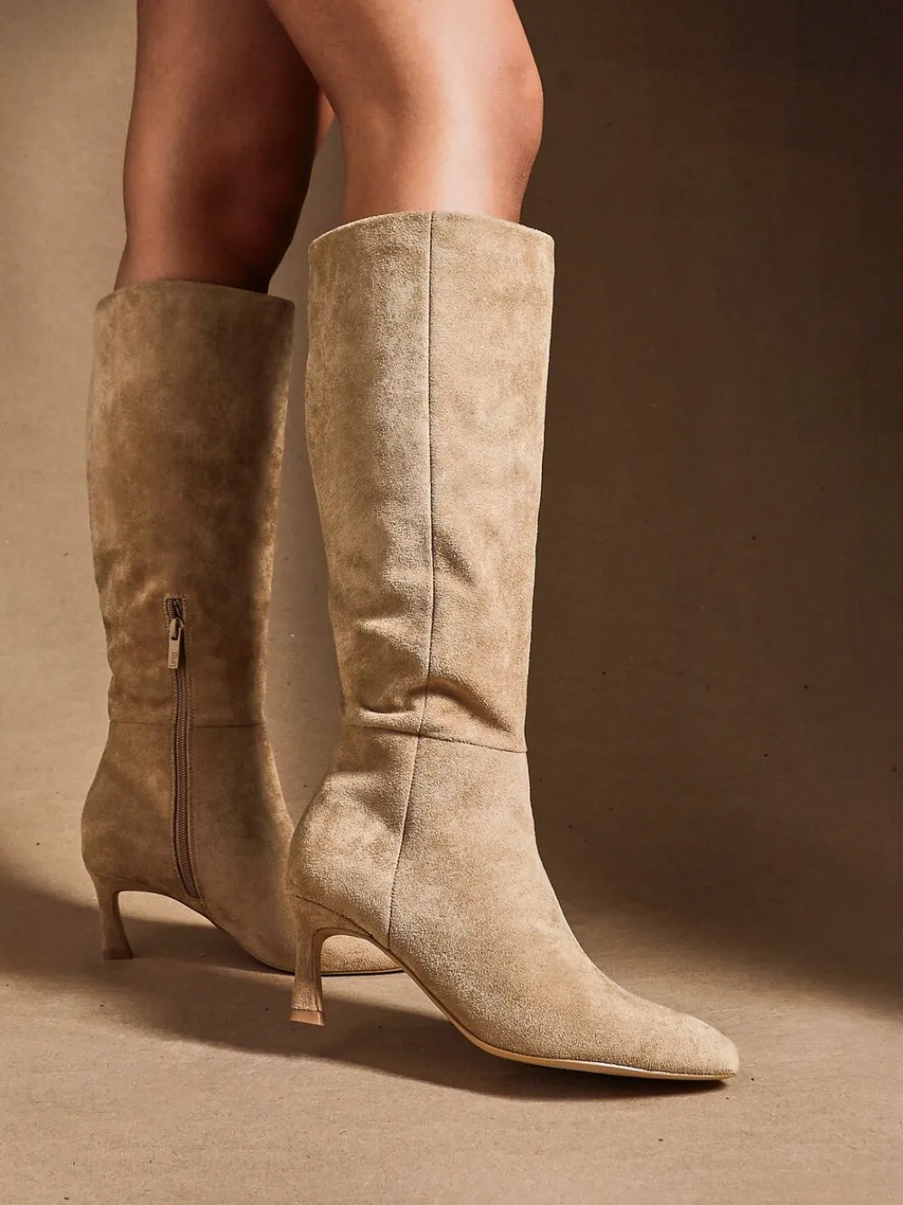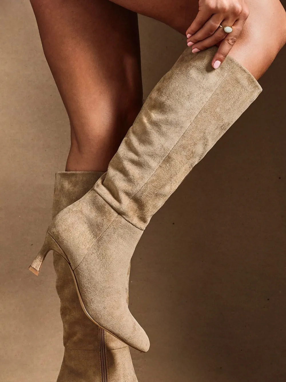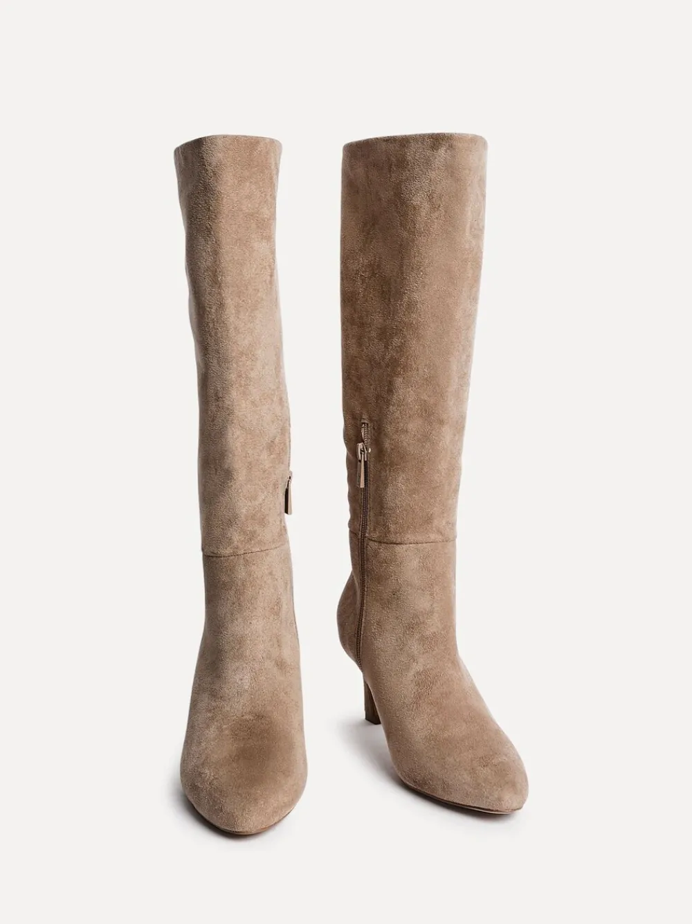 Step up your style with this sleek high-leg boot, designed to elevate any outfit. Crafted with a stiletto heel for a shaped silhouette, it features high quality faux suede, a soft fur lining and cushioned inner sock to keep you warm and comfortable from day to night. Perfect for pairing with dresses, denim or layered winter looks. Boot length: 37.5cm Hakhoogte 6 cm. Bovenwerk – 100% andere vezels, Voering. en sokken – 100% overige vezels. Zool – 100% rubber.