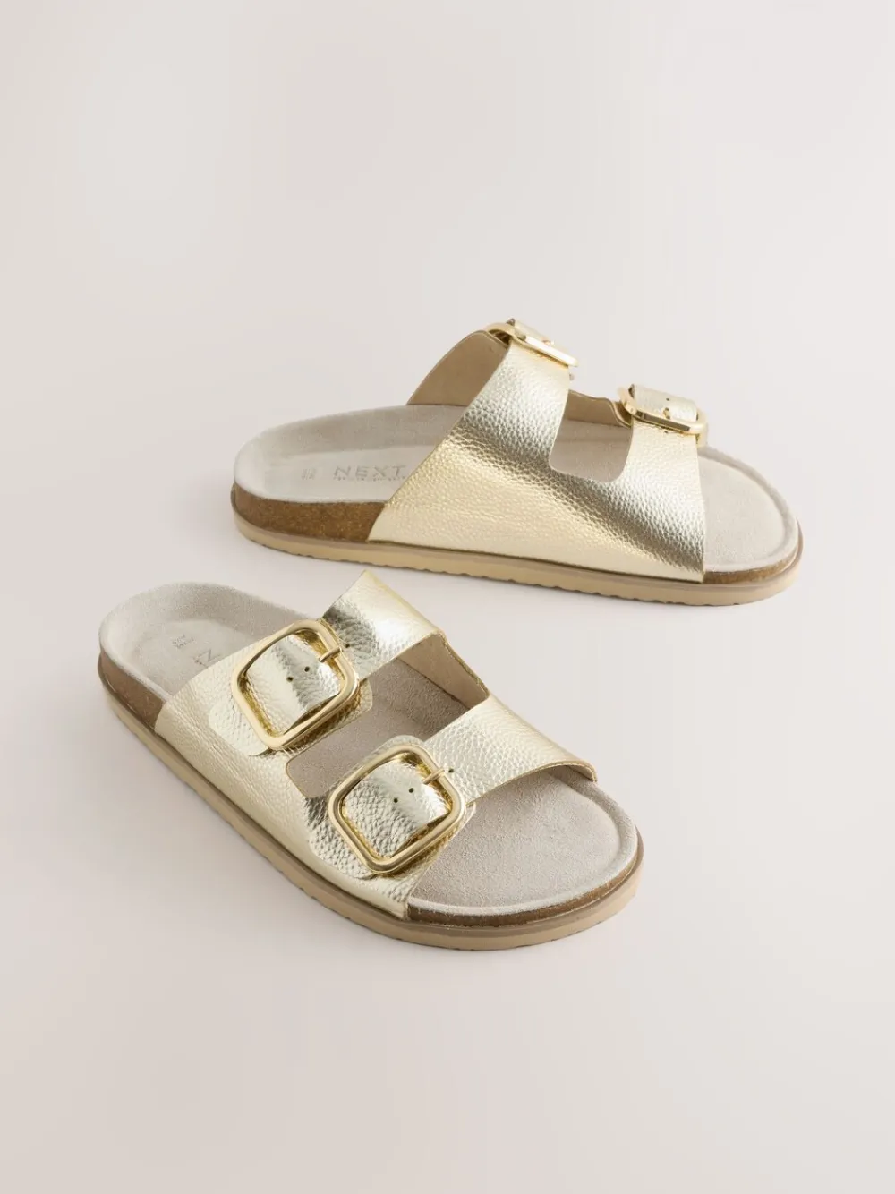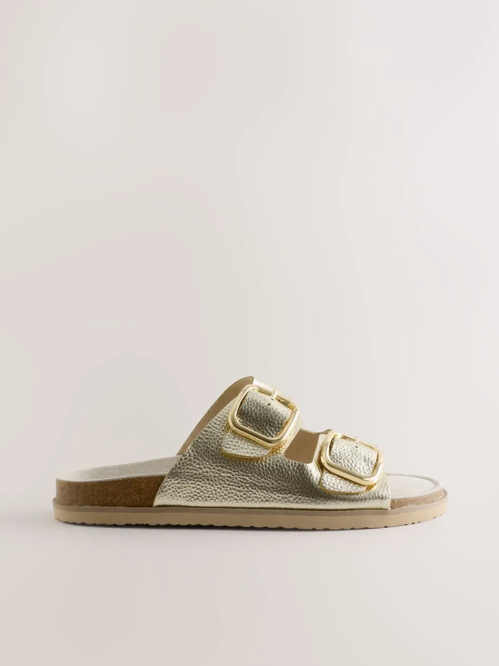 Add a touch of radiant style to your warm-weather footwear with these stunning gold leather sandals. Designed with an extra-wide fit, they feature a cushioned footbed for exceptional comfort that lasts all day. The classic double-buckle detail allows for an adjustable, secure fit, making these premium leather sandals a versatile staple for any sunny occasion. Leather upper Extra-wide fit Double buckle detail Comfortable footbed Bovenwerk – leer; voering en voetbed – Textiel, Leer, Zool – Andere materialen.