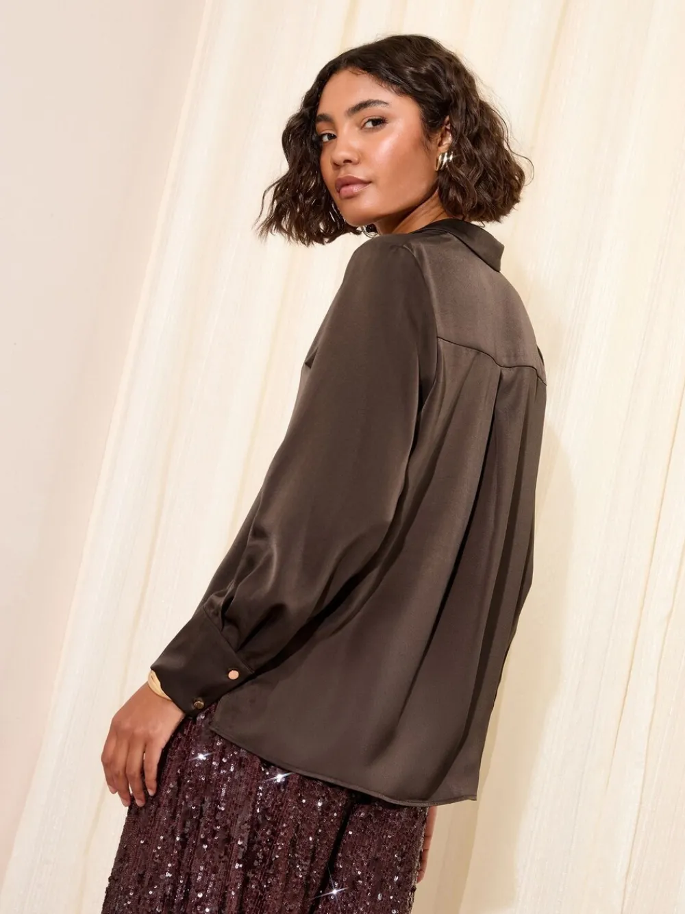 Eevate your look with this Smart Satin Shirt, designed for elevated dressing. Crafted from smooth satin fabric, it drapes beautifully, offering a flattering fit. The polished gold buttons on the front and cuffs add a touch of sophistication, making it perfect for chic day-to-night styling. Satin fabric Gold buttons on front and cuff Collared neckline Flattering fit 100% polyester.
