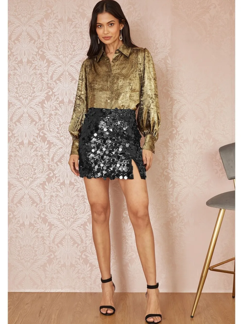 Ga de feestdagen tegemoet in deze prachtige minirok – With oversized sequins to really up the style stakes. The simple shape paired with a hemline split really does make this partywear perfection. Style with tights and a simple top for chic vibes. Party season essential Mini length with split hemlines Gorgeous oversized sequins Standaard van tailleband tot zoom 16″ / 41 cm. Alleen met de hand wassen. Buitenkant: 100% polyester. Voering: 100% polyester.