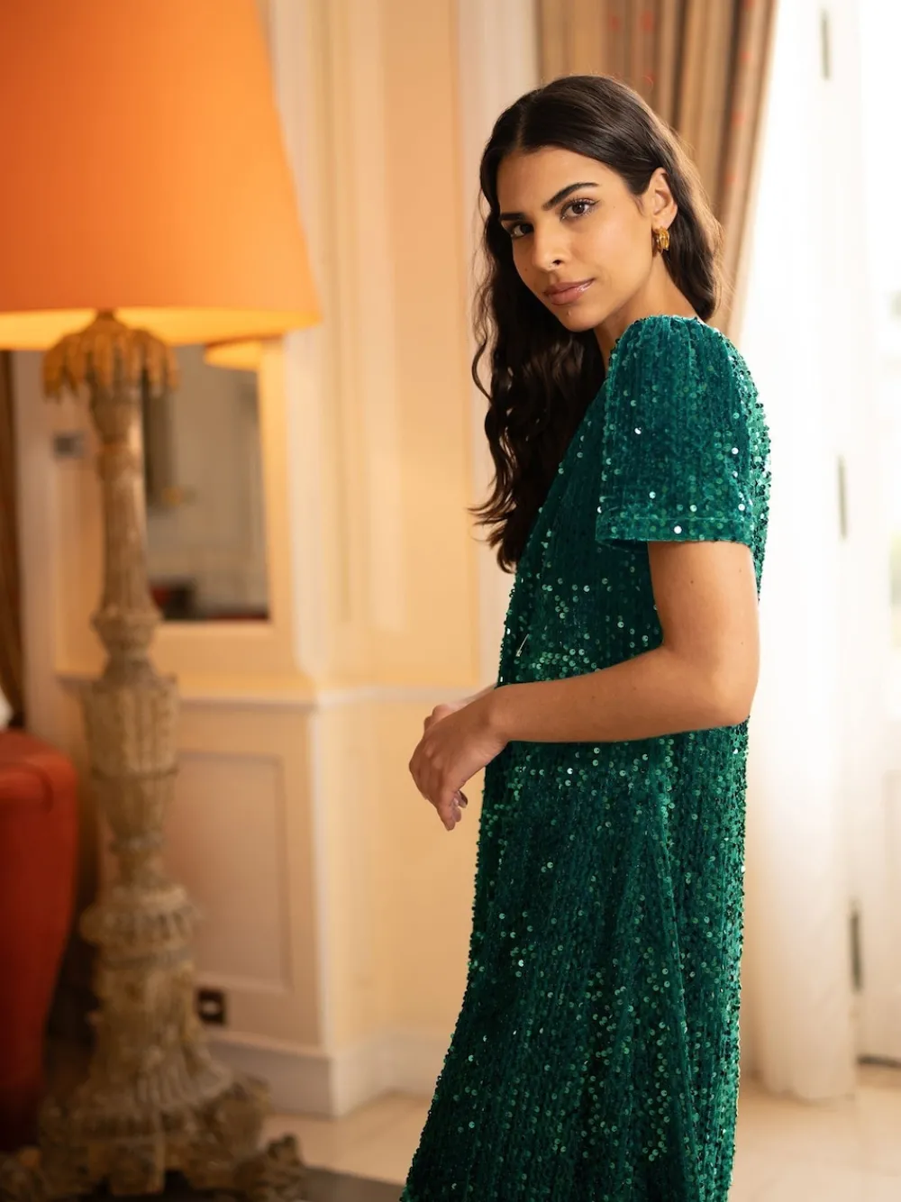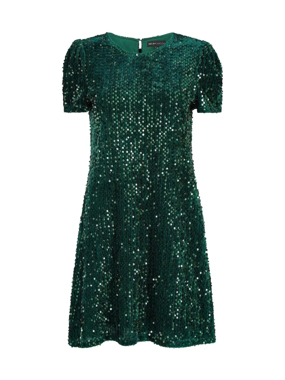With dazzling sequins embellished on lightweight fabric, this tunic dress is a perfect party piece. The short sleeves and relaxed silhouette offer a timeless shape that can be worn every year. Wear with knee-high boots for maximum impact. Alleen met de hand wassen. Buitenkant: 100% polyester. Voering: 100% polyester.