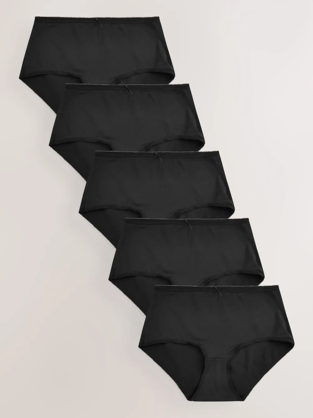 Onze Grootverpakking microvezel slips in Zwart zijn ontworpen om comfortabel en onzichtbaar te zijn onder je Favorieten outfits. Deze elastische, middelhoge slip is gemaakt van een zachte mixstof en heeft een flatterende en comfortabele pasvorm die met je meebeweegt. Combineer met je favoriete dagelijkse beha voor een relaxte Lingerielook. Pak van vijf Microvezel stretchy Hipster Onderbroeken Elastische tailleband Middelhoge taille Katoenen kruisje Machinewasbaar. 5 x slips hoofdzakelijk 86% polyester, 14% elastaan. Inzetstuk 100% katoen. Artikelen met het curve-logo zijn verkrijgbaar in de maten 18 en groter.