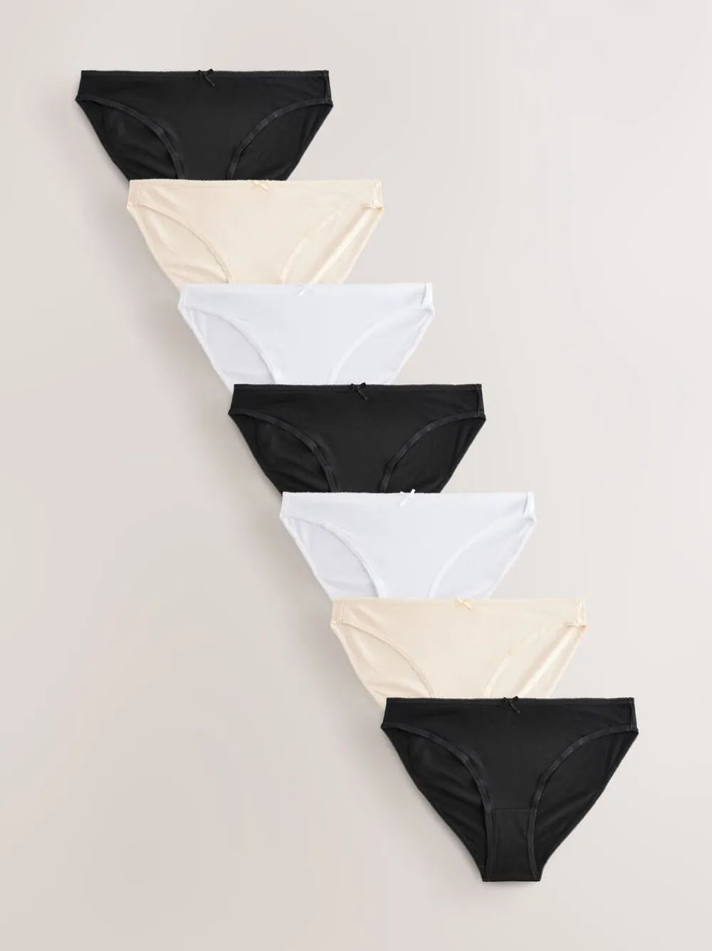 Our bestselling everyday knickers. Naturally breathable cotton for all day comfort. Comes in a range of pack size, shape and colour to suit all customers. Machinewasbaar. 7 x slipjes hoofdzakelijk 95% katoen, 5% elastaan. Inzetstuk 100% katoen. Artikelen met het curve-logo zijn verkrijgbaar in de maten 18 en groter.