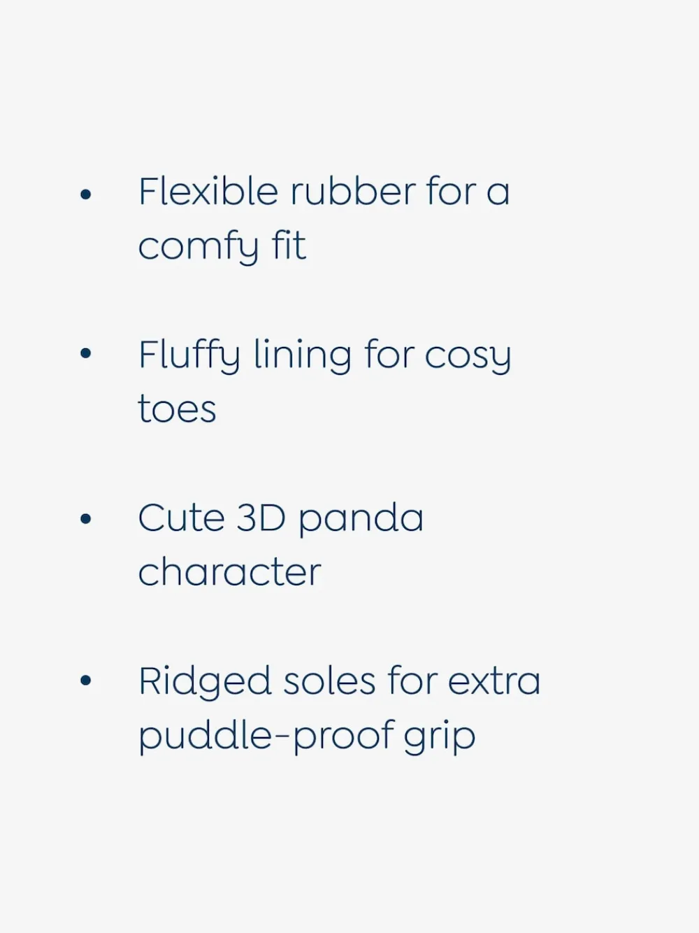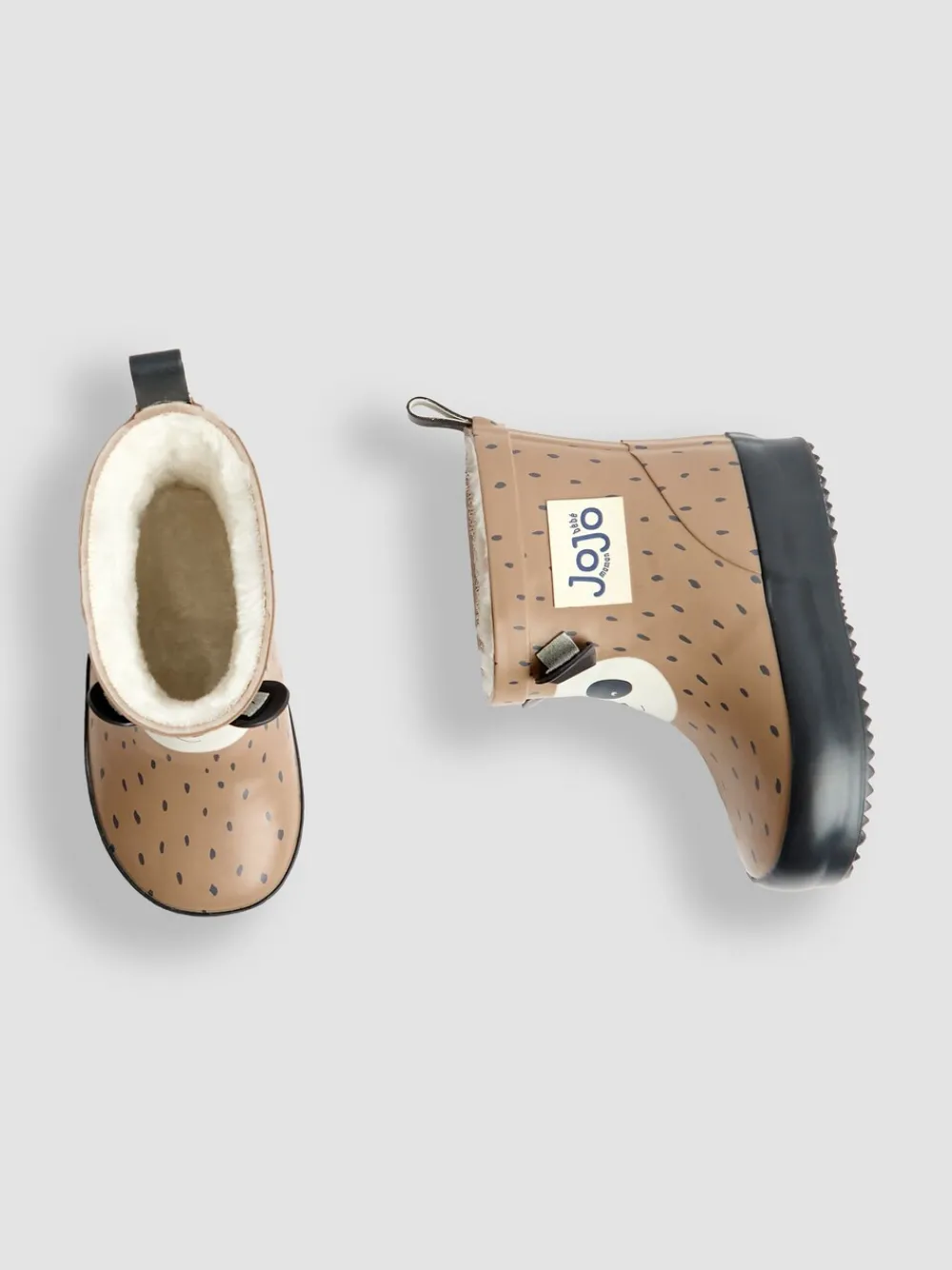 Our wellies are without a doubt one of our most popular picks, and this season they re available in this modern ankle-length style complete with cosy fleece lining and a playful panda character design! Soft, supple and comfier for little feet than plastic Wellington boots, these are perfect for muddy puddle jumping, with a ridged, grippy sole that gives a little extra stability on wet ground. • Brown ankle height wellies • Panda design to front • Speckled all over print • 3D ears • Cosy lined • Back tab for easy slip on • Ridged soles for better grip • Wipe clean only Hoofdbestanddeel – overige materialen, bovenwerk – overige materialen. Voering en voetbed – overige materialen, zool – Andere materialen.