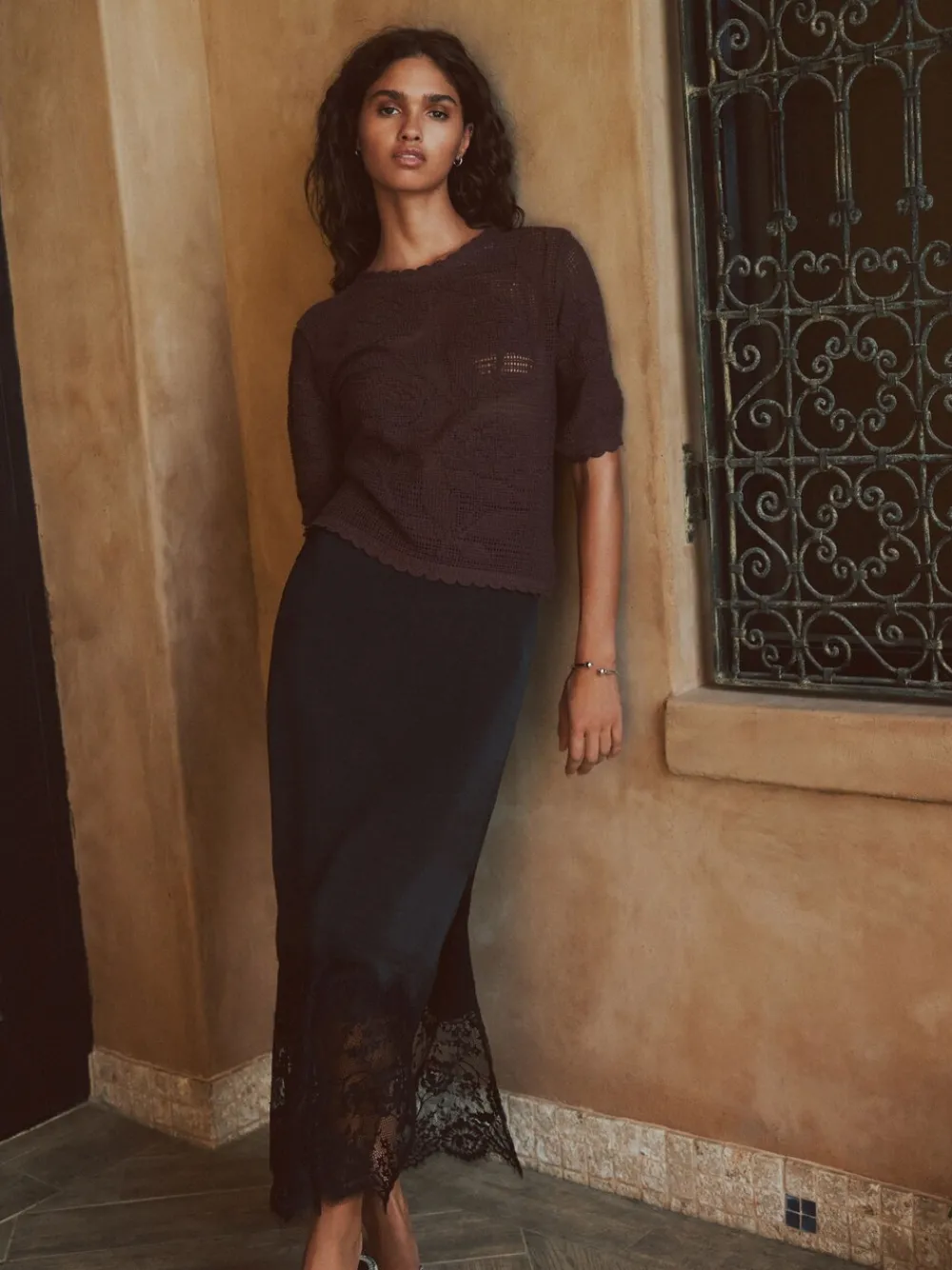 A beautiful summer staple, this t-shirt features a striking floral crochet design for delicate texture. Crafted from pure cotton, the top is finished with elegant scalloped trim on the crew neck, short sleeves, and hem. Perfect for adding a sophisticated, bohemian touch to your casual look. Pure cotton fabric Floral crochet design Crew neck Short sleeve Scalloped trim on edges Summer staple Knitted/crochet style Machinewasbaar. 100% katoen.