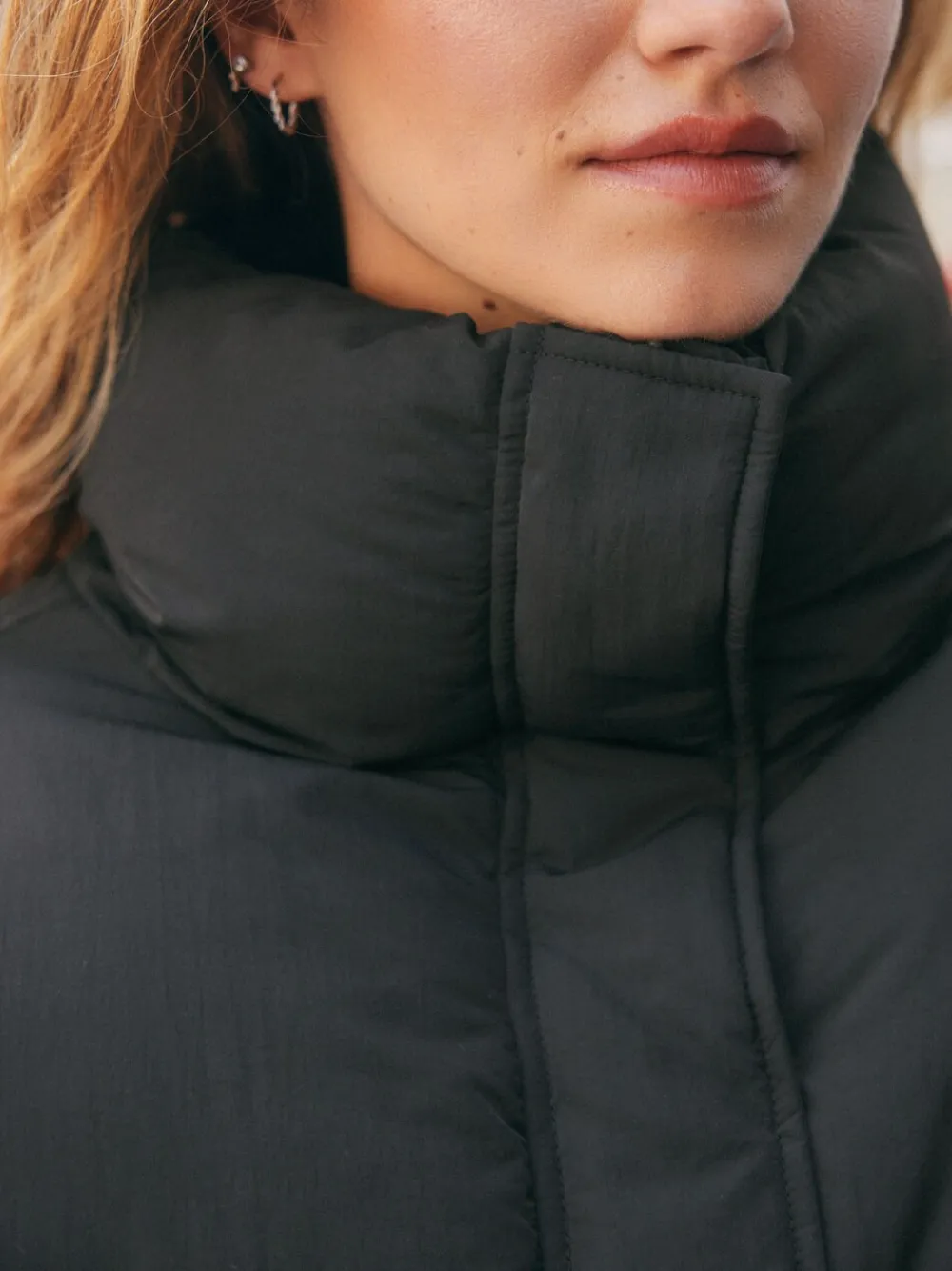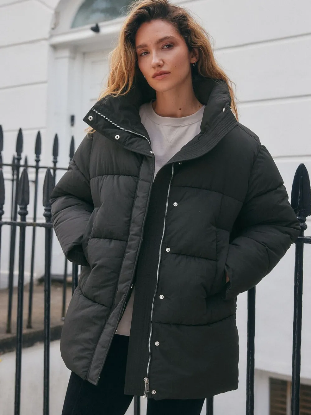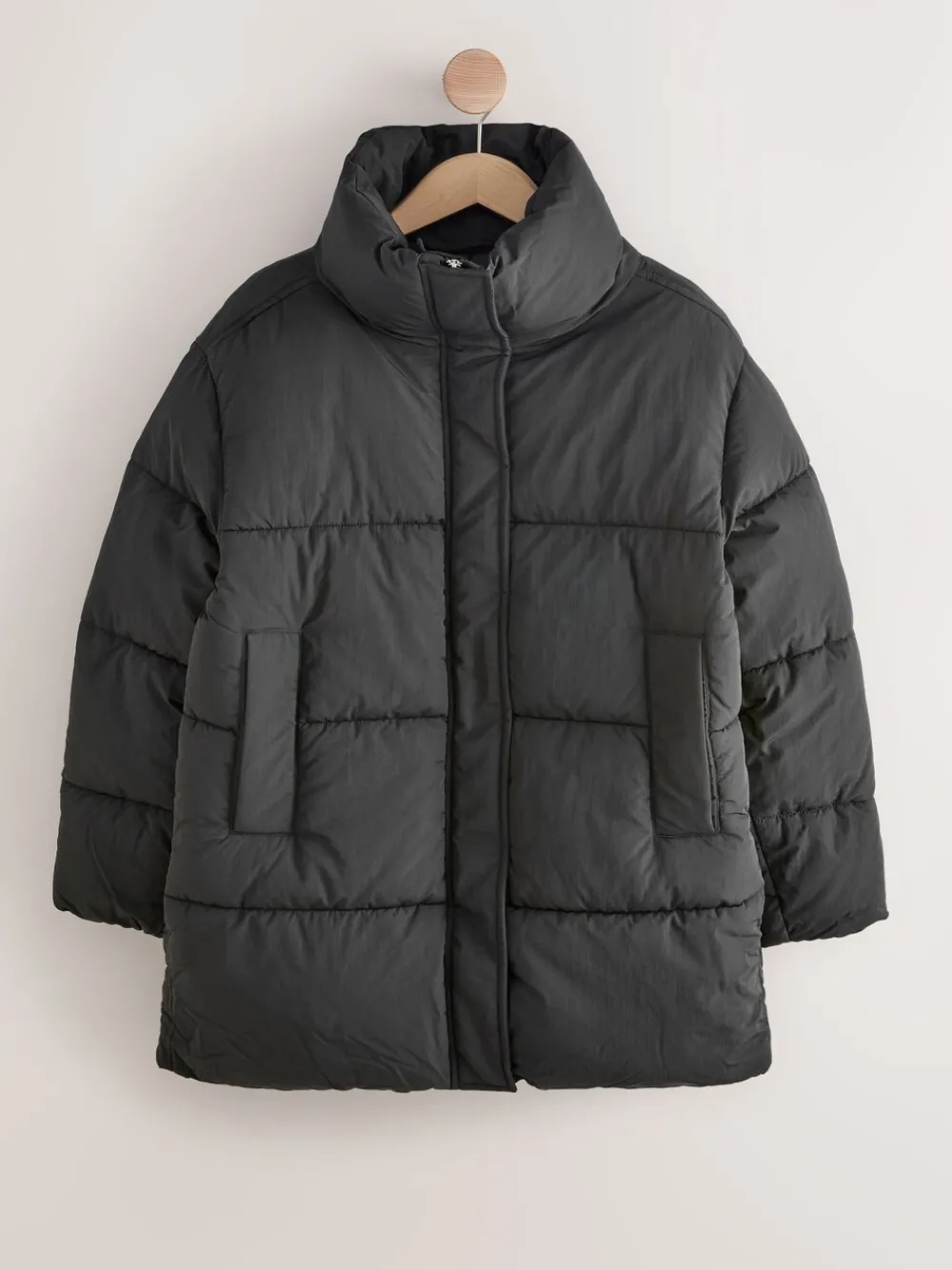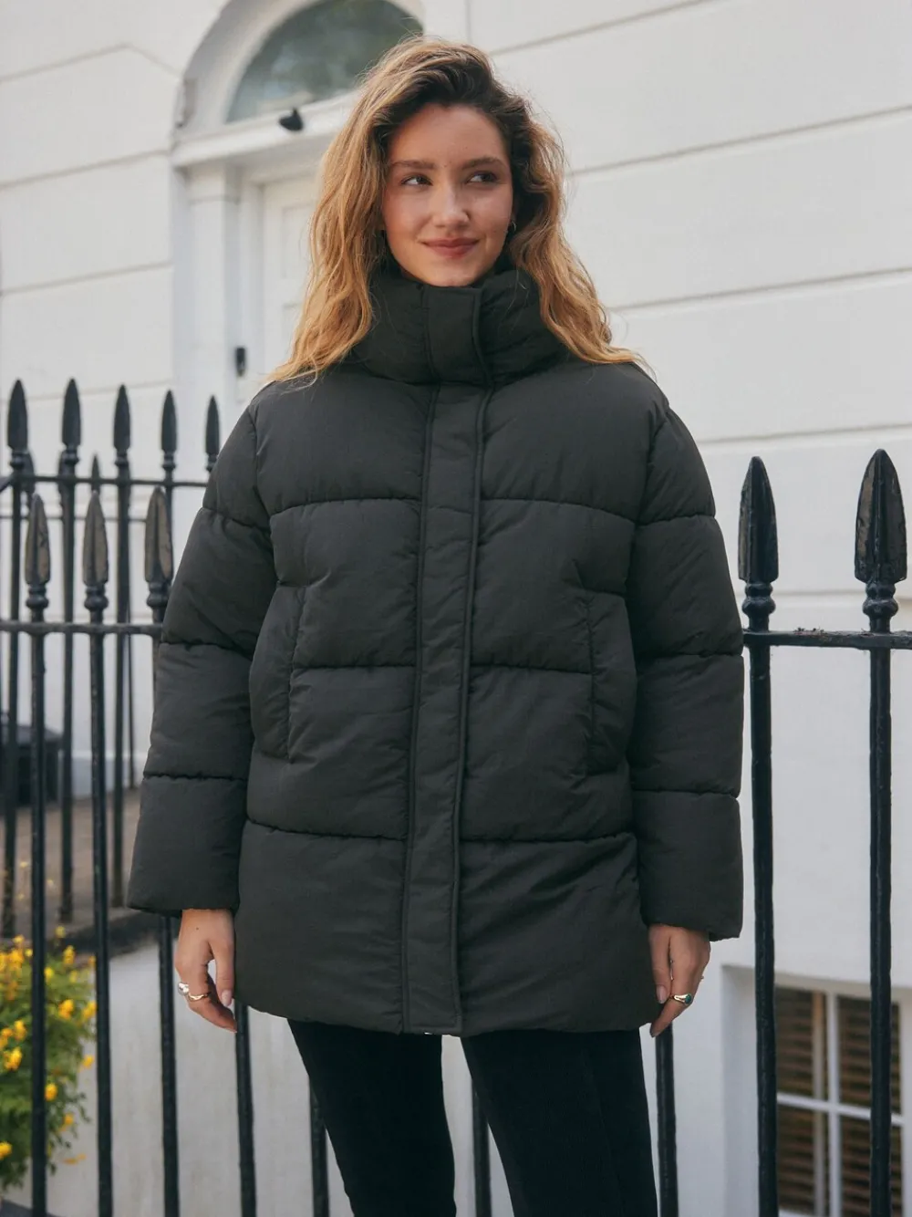 Stay warm and dry all winter long in this gorgeous padded coat, perfect for unpredictable British weather. The practical shower resistant fabric and cosy padding ensure protection, while the mid length offers great coverage. It features a secure zip fastening, high neck, and luxurious fleece lined pockets for extra warmth. Shower resistant finish High neck and zip fastening Mid length Fleece lined pockets Padded design Machinewasbaar. Hoofdbestanddeel 100% nylon. Voering 100% gerecycled polyester. Vulling 100% gerecycled polyester.