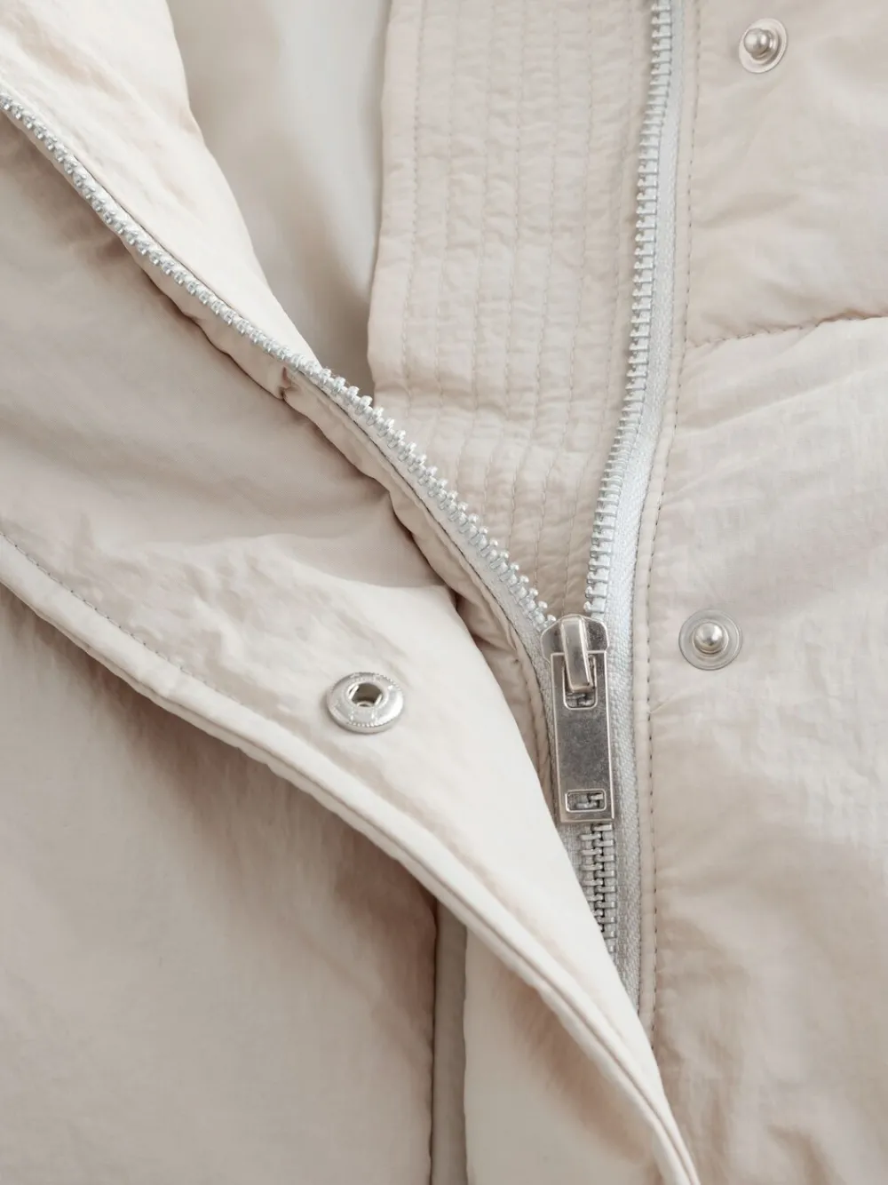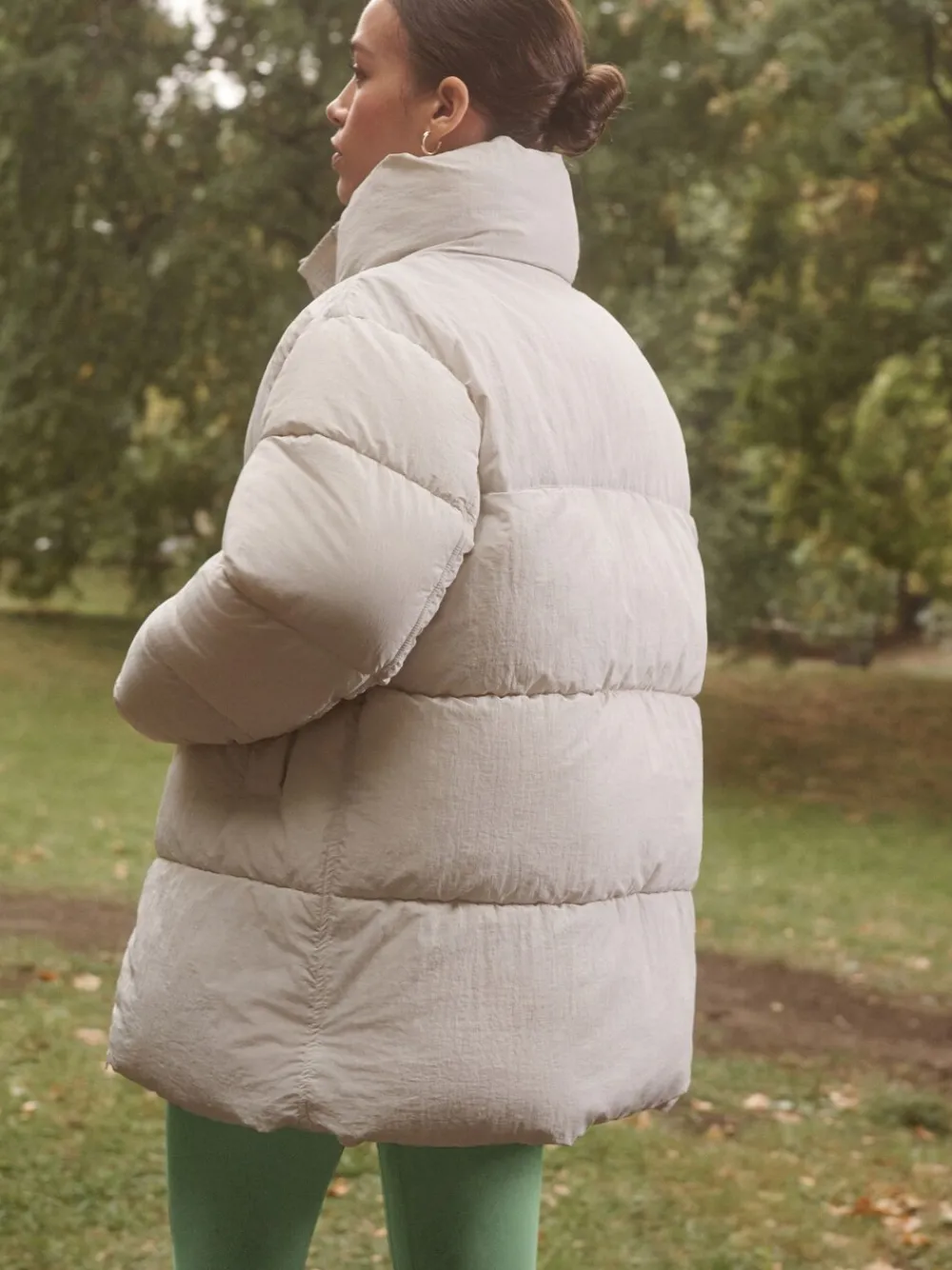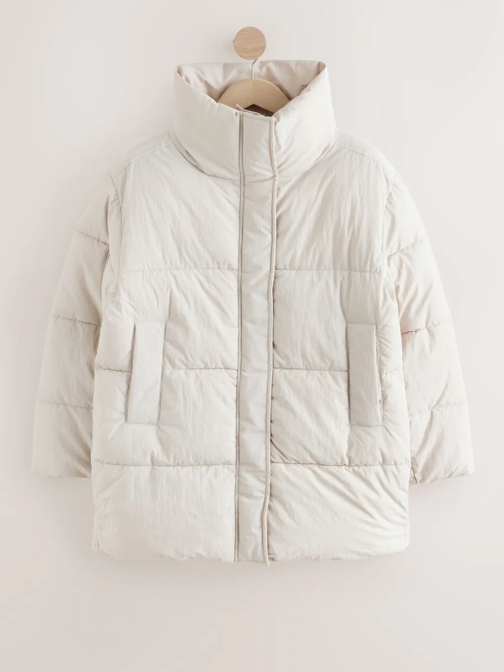 Stay warm and dry all winter long in this gorgeous padded coat, perfect for unpredictable British weather. The practical shower resistant fabric and cosy padding ensure protection, while the mid length offers great coverage. It features a secure zip fastening, high neck, and luxurious fleece lined pockets for extra warmth. Shower resistant finish High neck and zip fastening Mid length Fleece lined pockets Padded design Machinewasbaar. Buitenkant 100% Nylon. Voering 100% gerecycled polyester. Vulling 100% gerecycled polyester.