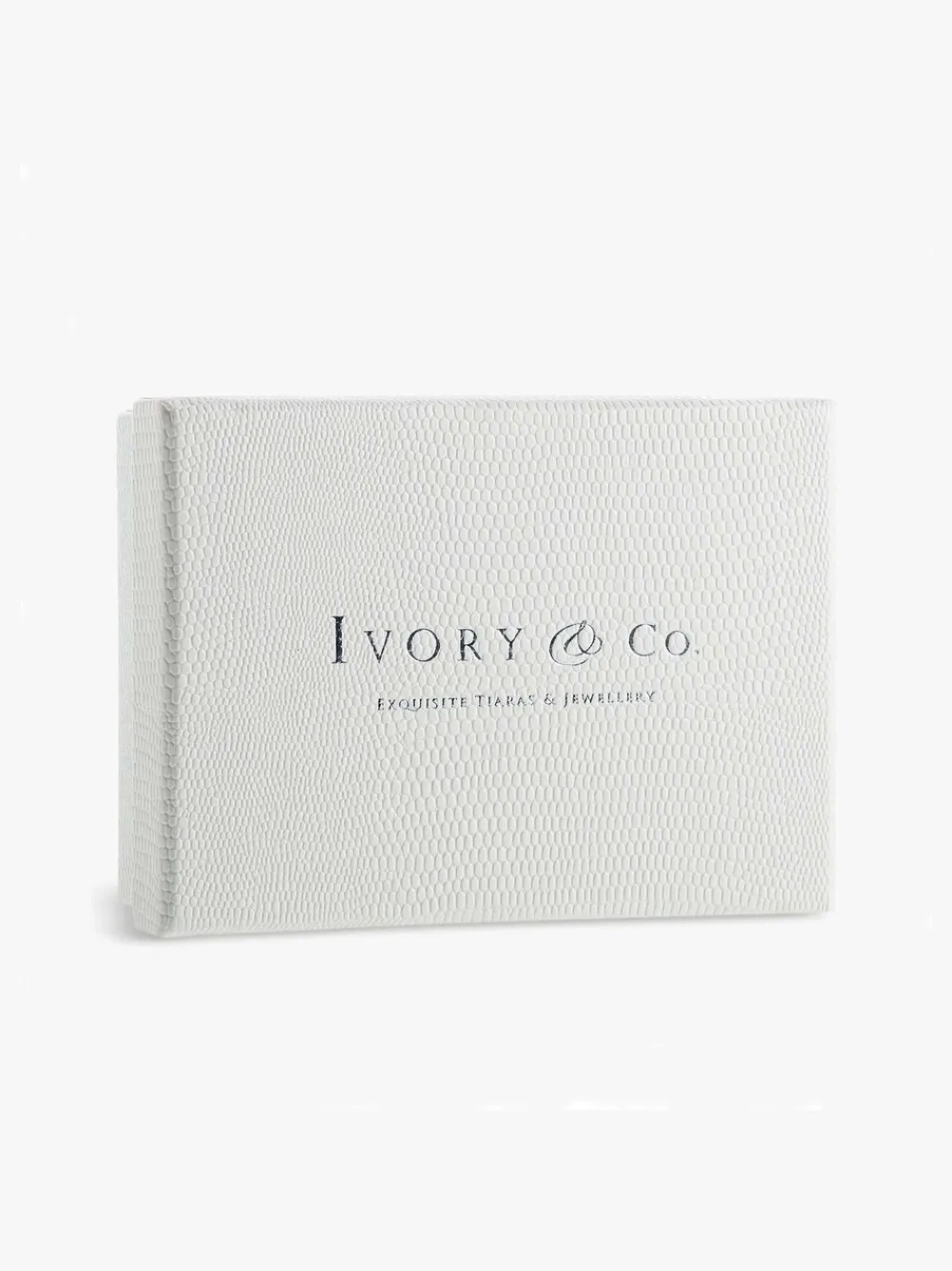Een mooie en delicate haarkam met een kristalspray-design. Geslepen solitaire- en marquisekristallen zijn Natuurlijk bezet met ivoorkleurige Natural Lustre kunstmatige parels in een gestileerd blad- en Bloemenmotief. Dit sieraad ziet er prachtig uit, zowel aan de achterkant van het hoofd als aan de zijkant van een kapsel. Ideaal voor bruiden die op zoek zijn naar een stijlvol accessoire met een vleugje glamour, dat echter ook prachtig staat in een relaxte boho-stijl. Het is ook ideaal voor bruidsmeisjes, gala’s en feesten. Verkrijgbaar in Zilver, 14karaat Goud of 14karaat plating, afhankelijk van het geselecteerde artikel. Met een breedte 12.5cm op het breedste punt is deze voorzien van een luxe metalen kam voor comfort en veilige styling. Wordt prachtig verpakt in een luxe designdoos geleverd. Elk Ivory & co-ontwerp wordt op traditionele wijze met de hand vervaardigd door vakkundige ambachtslieden, waarbij alle kiezelkleurig en Elementen met de hand worden uitgezocht en Set. Ontworpen door een bekroond ontwerpteam. 50% messing, 25% kubieke zirkonia, 25% stenen (edel).