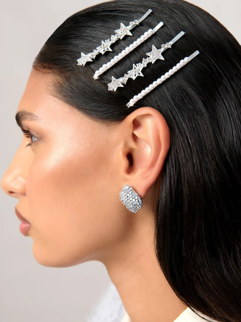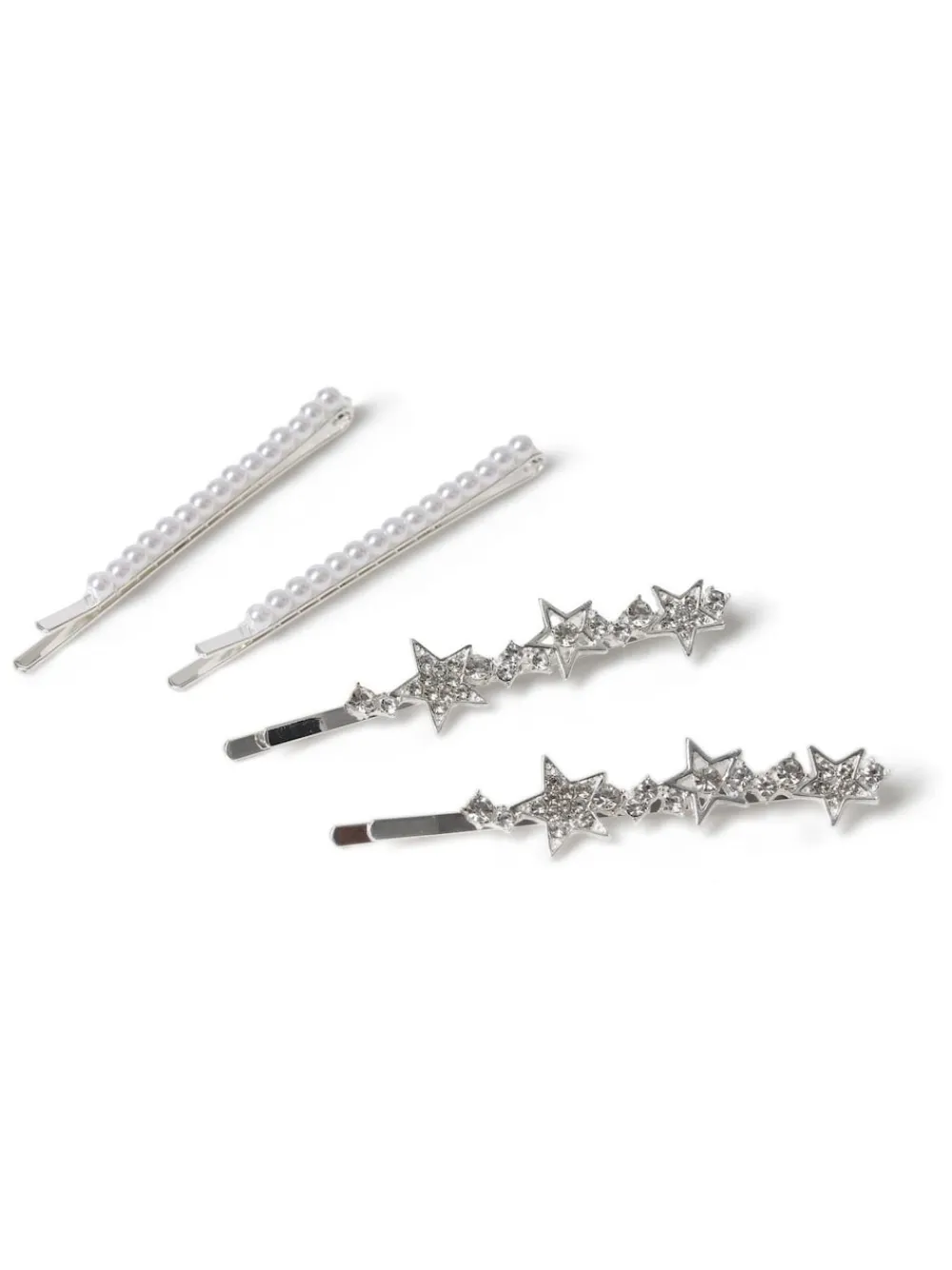 Silver Tone Silver Tone Sparkle Star Hair Slides*Aela Best