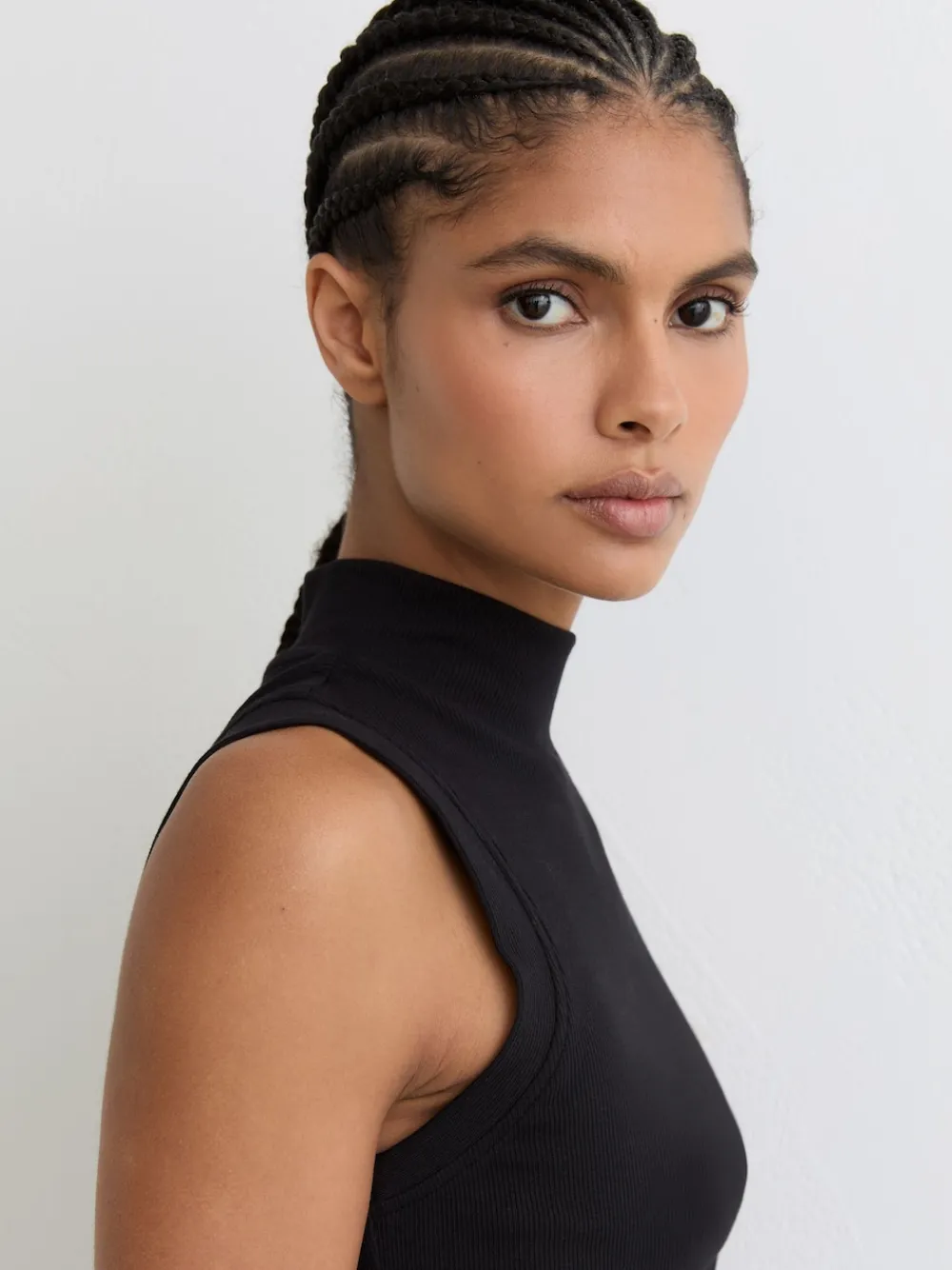 The Simone vest is crafted from stretch cotton in a fine rib for a close fit. A high neckline frames the face, while side ruching creates a flattering silhouette. Cotton with stretch Fine ribbing High neckline Side ruching Machinewasbaar. 95% Katoen, 5% elastaan.