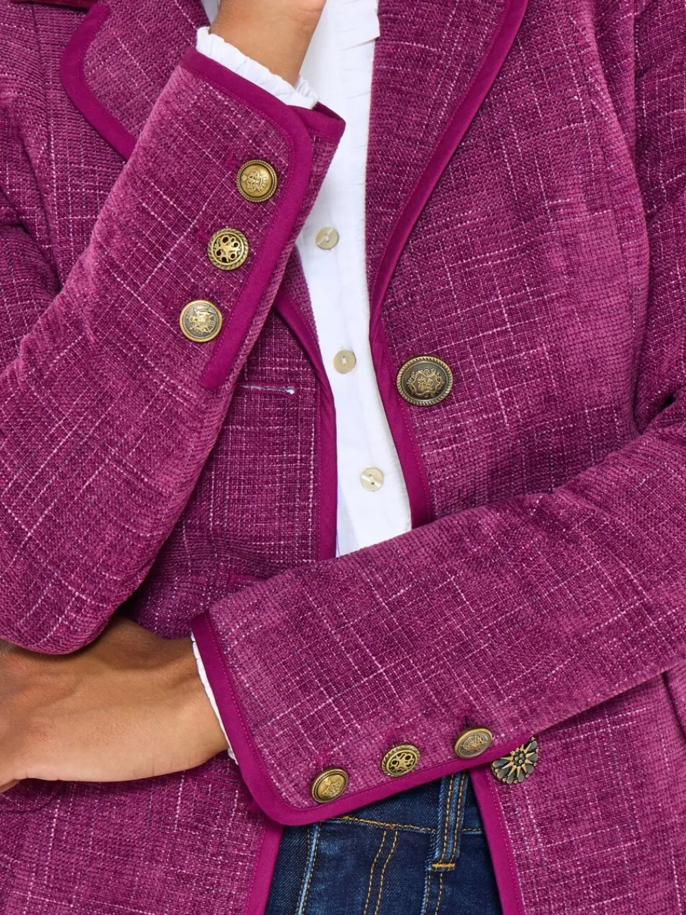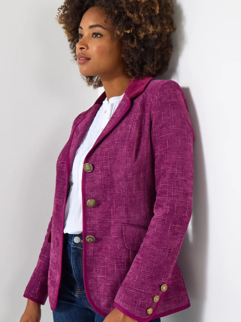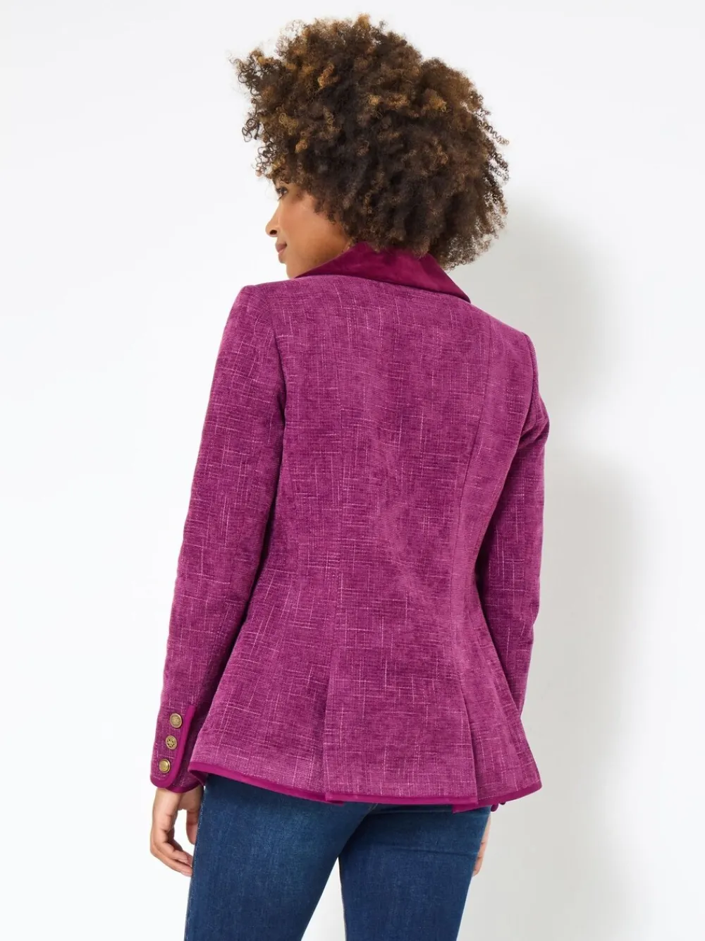 Our statement women’s jacket now has brand new colours for autumn! Highlighting subtle checks with a standout velvet collar, it s chic, sophisticated and full of character. A style you can treasure forever, wear this timeless look your way, and you’ll command attention as soon as you step in the room. Length Regular 67cm, Petite 64cm Standaard van het midden van de nek tot de zoom 26.5″ / 67 cm. Alleen chemisch reinigen. 89% polyester, 11% viscose.