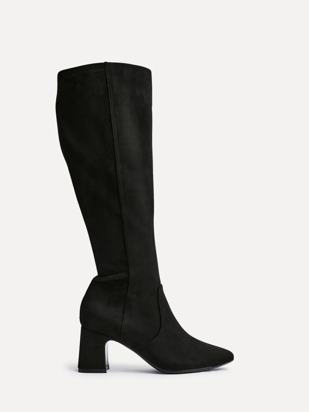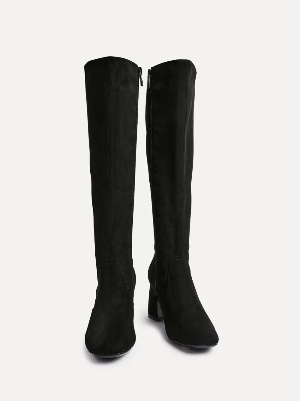 Step in luxury with our Slate knee high boot. Featuring a square toe and full size zip for easy wear. Designed for style and convenience with a block heel and padded insole. Perfect for elevating any outfit. Boot length: 40cm. Hakhoogte 6,5 cm. Bovenwerk – 100% andere vezels, Voering. en sokken – 100% overige vezels. Zool – 100% rubber.